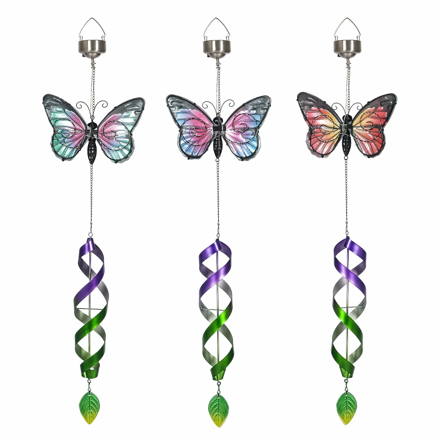 - 【Solar Powered Butterfly Windmill】- Handcrafted with quality metal and glass,vibrant colors makes it more vivid and eye-catching.Differ from other products,equipped with led lights and high efficient solar panel, it can absorb sun energy in day time and light up at night automatically.