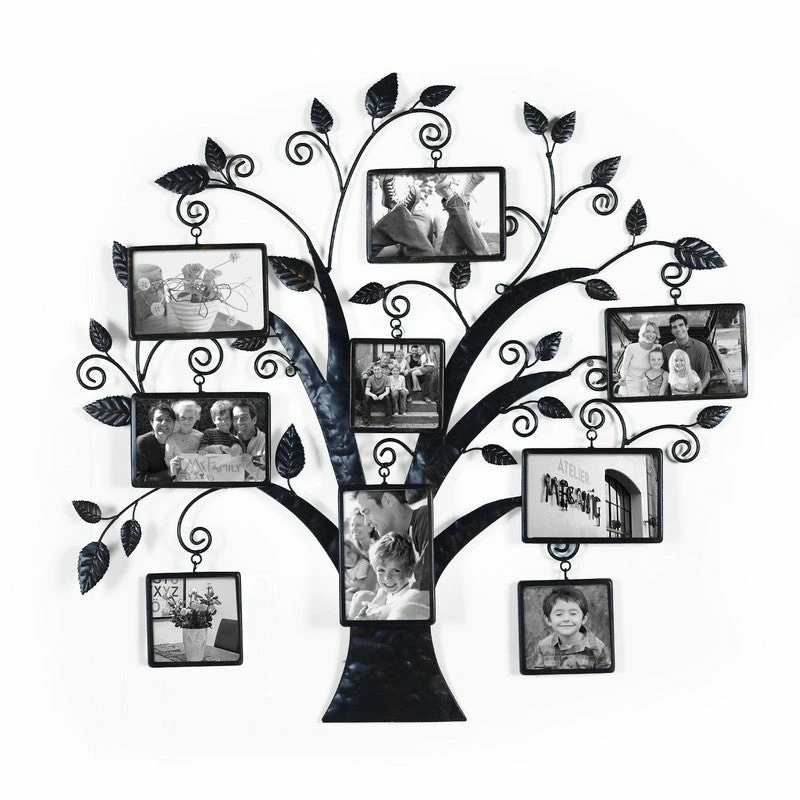 Home decor gift picture frames is made to display 6 pcs 4×6 photos and 3 pcs 4×4 images. Black color with rustic finish frames. Real glass cover in front provides clear display and classic accent.Total size of this square picture frames for wall is 30 x 1 x 28.8 inches(L x H x W). Weight 4.7 Pounds. Circles on back for easy hanging on the wall, simple to load with removable back panels.Show how your family tree has blossomed with this unique metal tree with 9 hanging picture frames creating an eye-catching and whimsical collage that is sure to win you many compliments.This beautiful and unique iron family wall art is perfect for the living room, kitchen, bedroom, or front hall, this frame also makes a great birthday, wedding, anniversary, or housewarming gift!Warranty is 100% guaranteed. Please feel free to contact us if there is any questions. Adeco only provide quality products and best services.