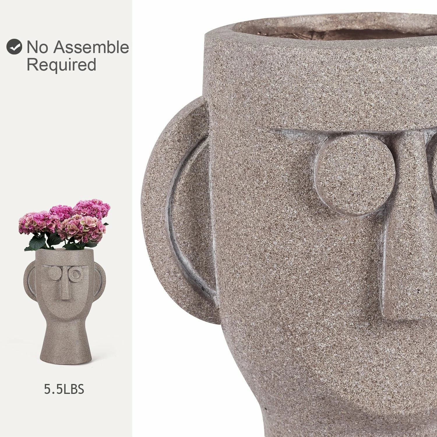 - ใQuality MaterialใThe plant pots is fabricated from magnesia composite, durable and sturdy for long-time use. And it is much lighter then regular concrete .Easy to move.(Plants are not included.)