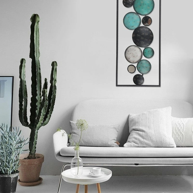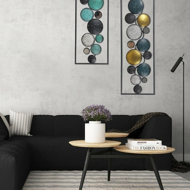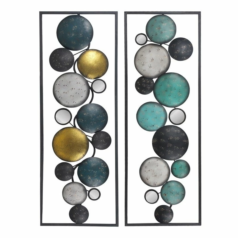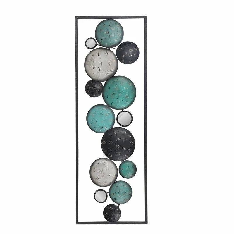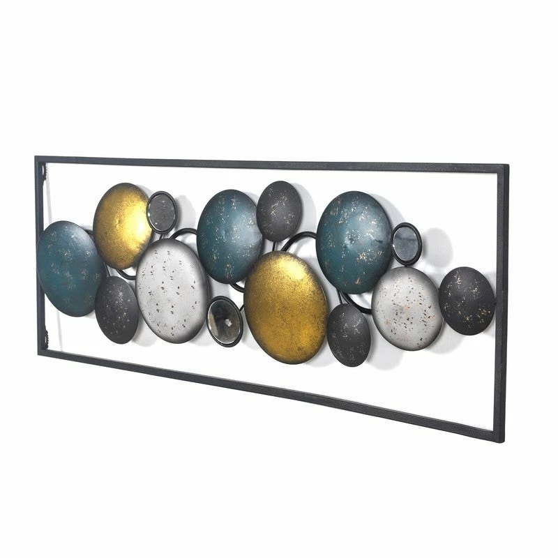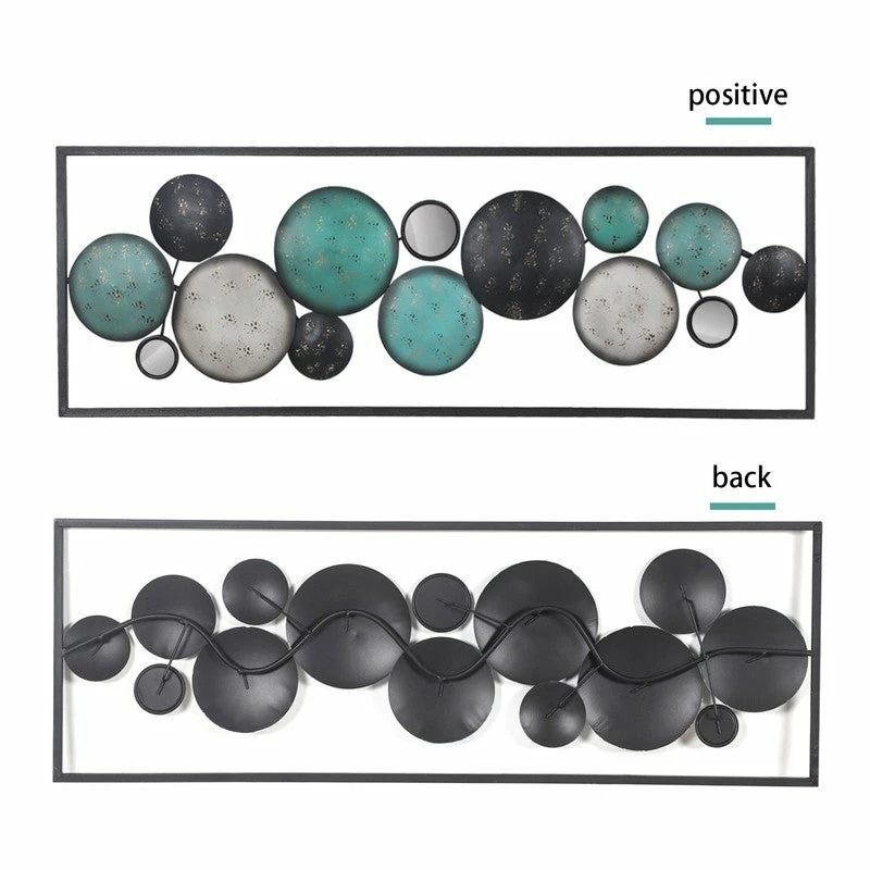 Sculptural art with mirrors for your spaces. Add depth and dimension to your space with the Floating Patterned Shapes in a Rectangular Frame.High Quality Made. Hand Crafted from the highest quality powder-coated iron, hang this versatile modern art behind a couch or above a bed for a dramatic statement.This piece measures as follows: 35.2 L x 1.2 W x 12.2 H inches. Contrasting roundels within the rectangular frame are patterned with classic floral and Fleur di Lise details that make for eye catching wall art.Decorate any room. Can be hung vertically or horizontally. Fine and easy going, this sculpture pairs easily with a variety of color pallets and design themes.IDEAL GIFT: The unique details of the welcome signs wall art will surely attract the eyes of your family and friends. A great gift for Holloween, Christmas, New Year or any other festivals