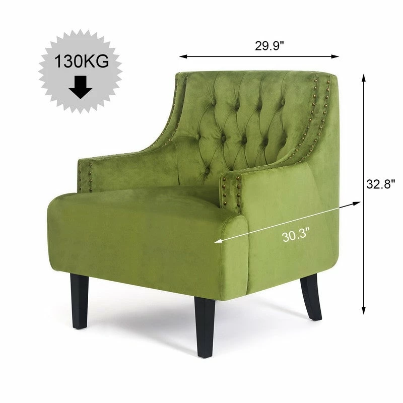 STURDY AND COMFORTABLE : Product Dimensions: 29.9″D x 30.3″W x 32.8″H. This living room accent chair is made with velvet fabric that is both soft and durable.Solid wood frame ensures the safety and stability of the living room accent chairs.It can hold up 300 lbs.