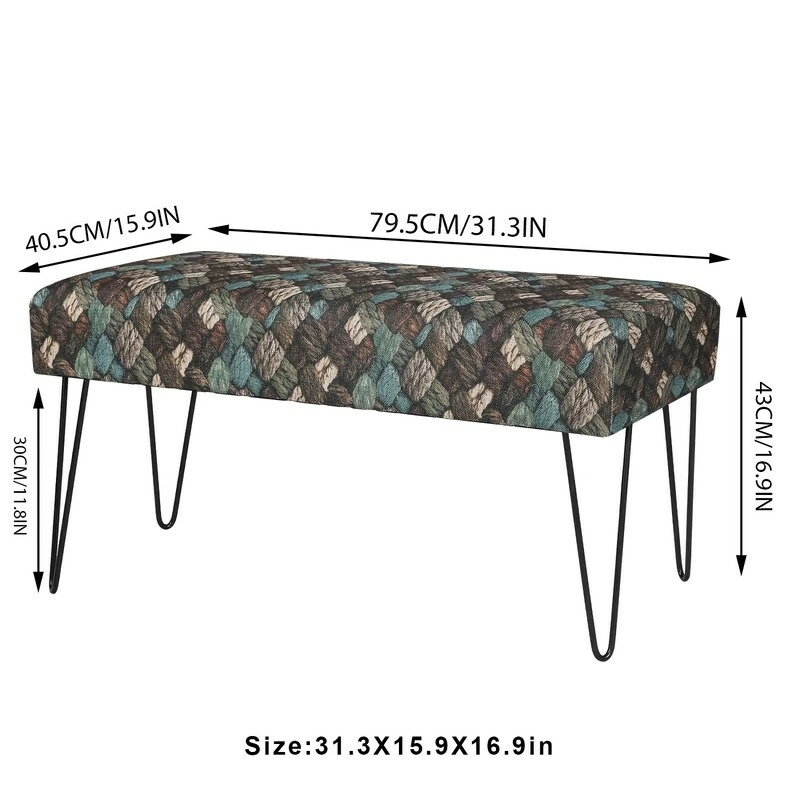 OTTOMAN DIMENSION: 31.3”L x 15.9”W x 16.9”H, The metal leg height: 11.8 inches. Easy assemble the upholstered bench with a simple tool.COMFORTABLE: High elastic cushion and solid metal legs that result in a comfortable seat. Soft, deformation is not easy, best to maintain structure.EASY TO ASSEMBLE: Simple assembly required, Convenient design makes it simple for you to screw 4 legs on. Please note: The metal legs are included in the bottom zipper pocket.MULTI-FUNCTION: The ottoman bench is the perfect match for entryway, living room, bedroom, vanity chairs and more! Style your home with an attractive ottoman.MULTI-PURPOSE: This Bench is a graceful addition to your bedroom, or living room; or keep it in your entryway as a comfortable place to sit while you slip on your shoes.