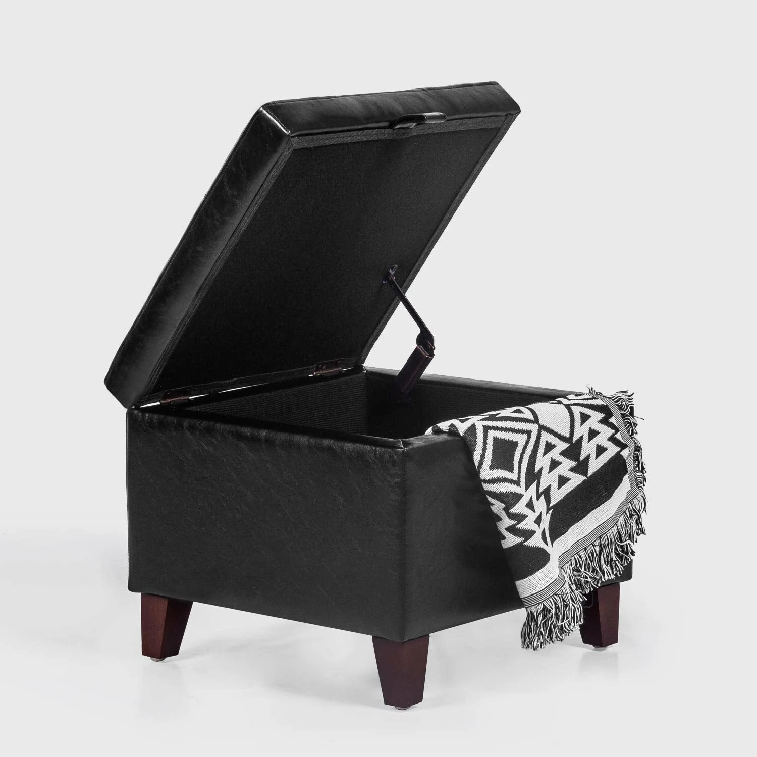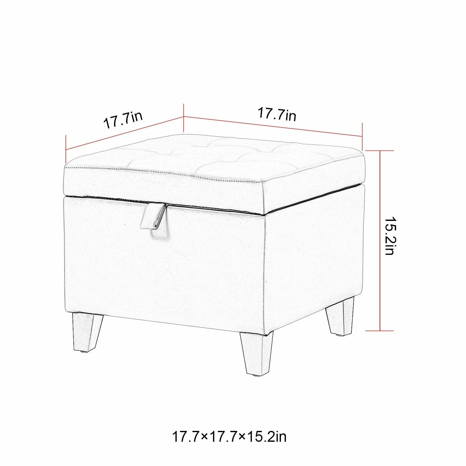 - Make a splash in your space with the chic and modern design of this posh little ottoman. The square shape bespeaks contemporary versatility and the tufted top lends a touch of the traditional. The cushioned top is the perfect footrest, which opens up to reveal extra storage for organization and tidiness.