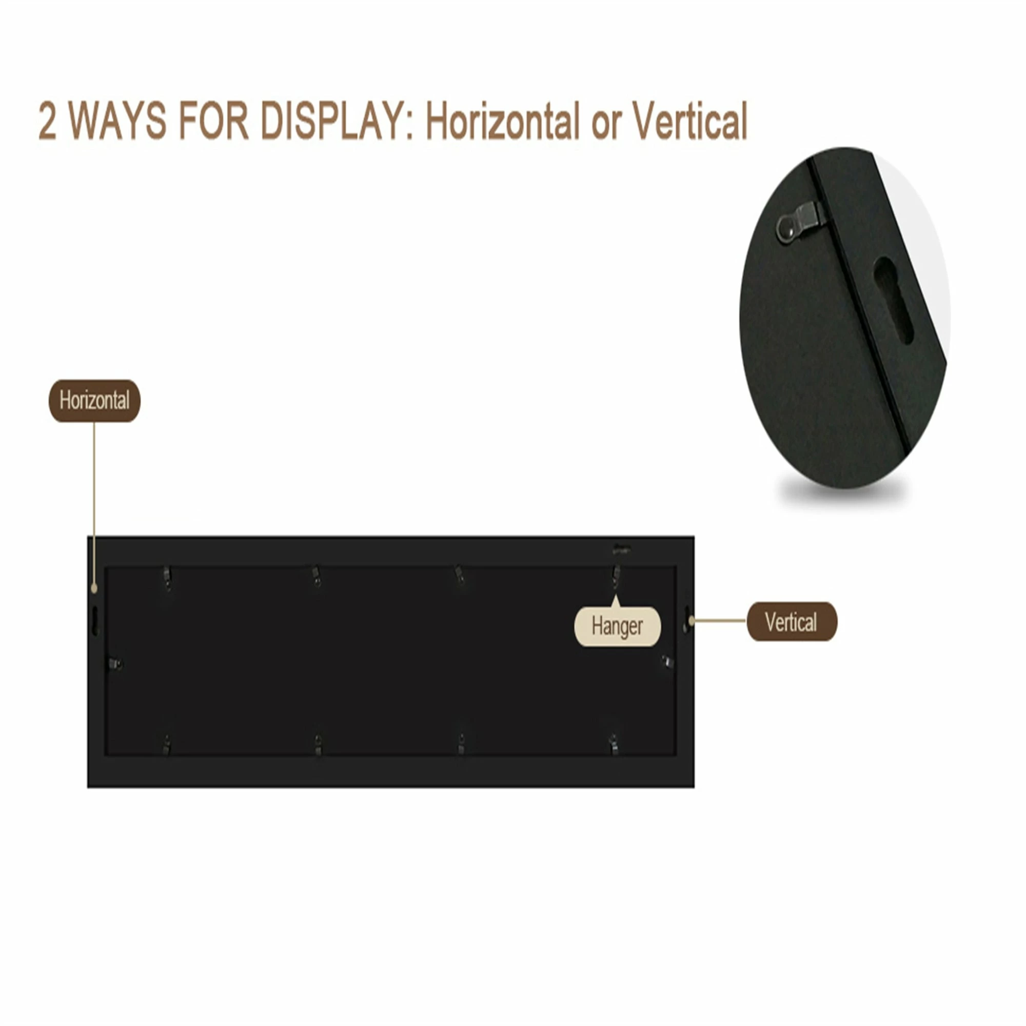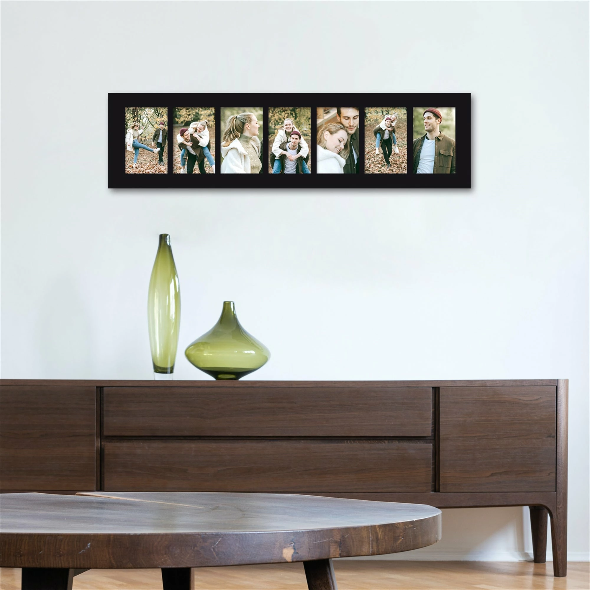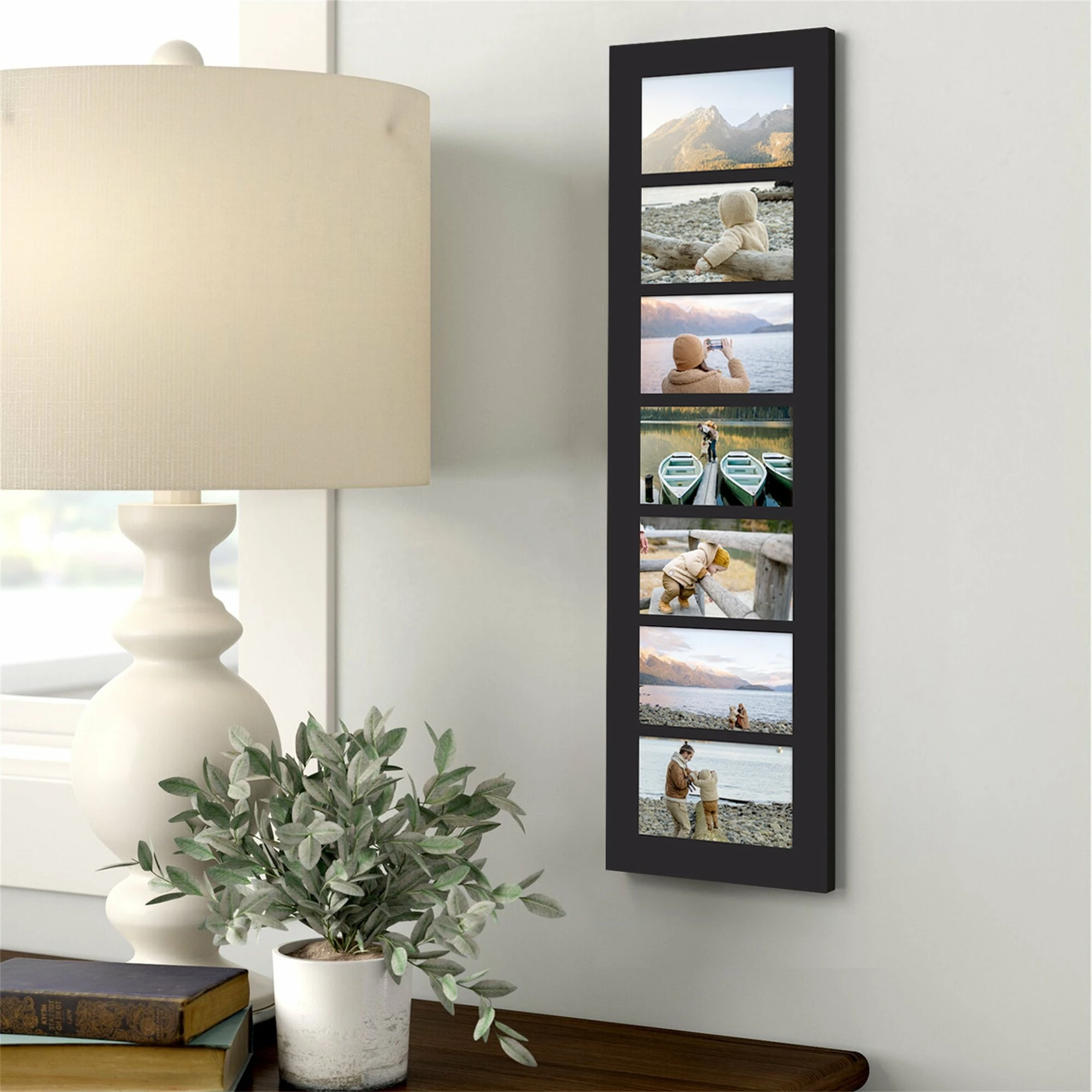 This simple, multi-photo frame is a great addition to your living room or kitchen decor. The matte finish will subtly enclose a black and white collage of family photos, or provide bold contrast to a collection of full-color images. Space for seven photos and the option to hang horizontally or vertically gives you freedom to display a timeline of child birthdays, a series of wildflowers, or a combination of your favourite shots. Order a few for gifts, or create an eye-catching collage for every room of the house. This frame is a wonderful choice for a birthday, wedding or anniversary gift.