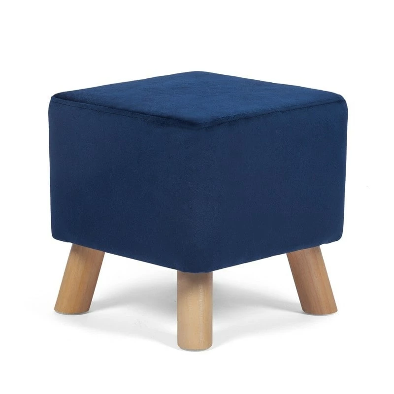 Put your feet up in style with this cube-shaped ottoman footrest from Adeco. This footrest is upholstered in blue velvet fabric with a soft cushion, giving in an upscale flair. The sturdy angled wood legs have non-slip protection to keep the ottoman in place on your floor.