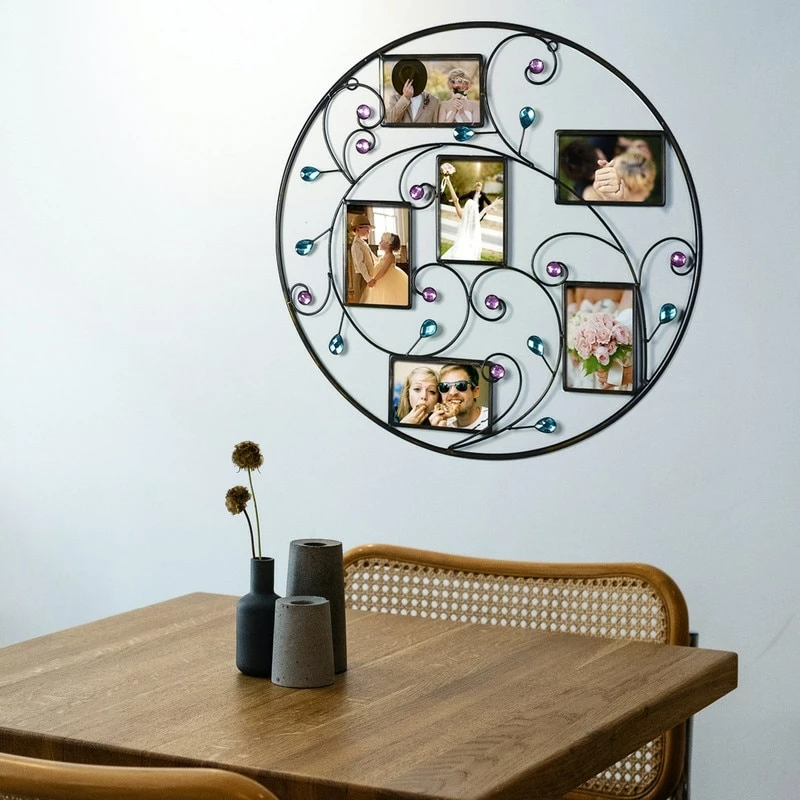 Create a mesmerizing collage of your precious memories with this elegant picture frame. The frame’s circular enclosure paired with gorgeous scroll accents makes for a lovely blend of tradtional appeal and contemporary design.
