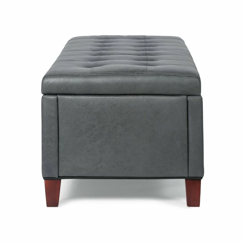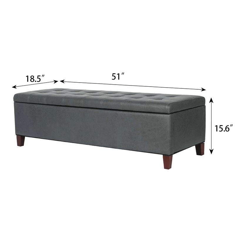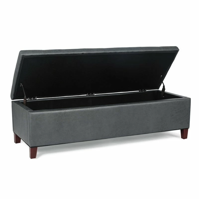 Larger Size: King size bed bench overall dimension is 51″ L x 18.5″ W x 15.6″ H, Interior Size: 46.9″ L x 14.6″ W x 9.1″ H, max capacity is 360 lbsHand-made: This folding storage ottoman bench with flipping lid is handmade by experienced workers, and the embedded solid wood feet make it more durableMore Thoughtful Design: Tufted brown bonded leather ottoman is made with bonded (reconstituted) leather, which contains some real leather material,more environmentally friendly;A tufted top and pillow soft cushioning for an exquisite and luxurious feel against the skinMultifunctional: Oversized rectangle ottoman is great for Bed Room, Foyer and Lobby Wherever Needs Seating and Storage, also Blends well with a Variety of Decor; Perfect Size in Front of Queen size Bed or upASSEMBLY REQURIED: Package comes with separated boards.All the parts for installation are included.DIY lovers’ choice.