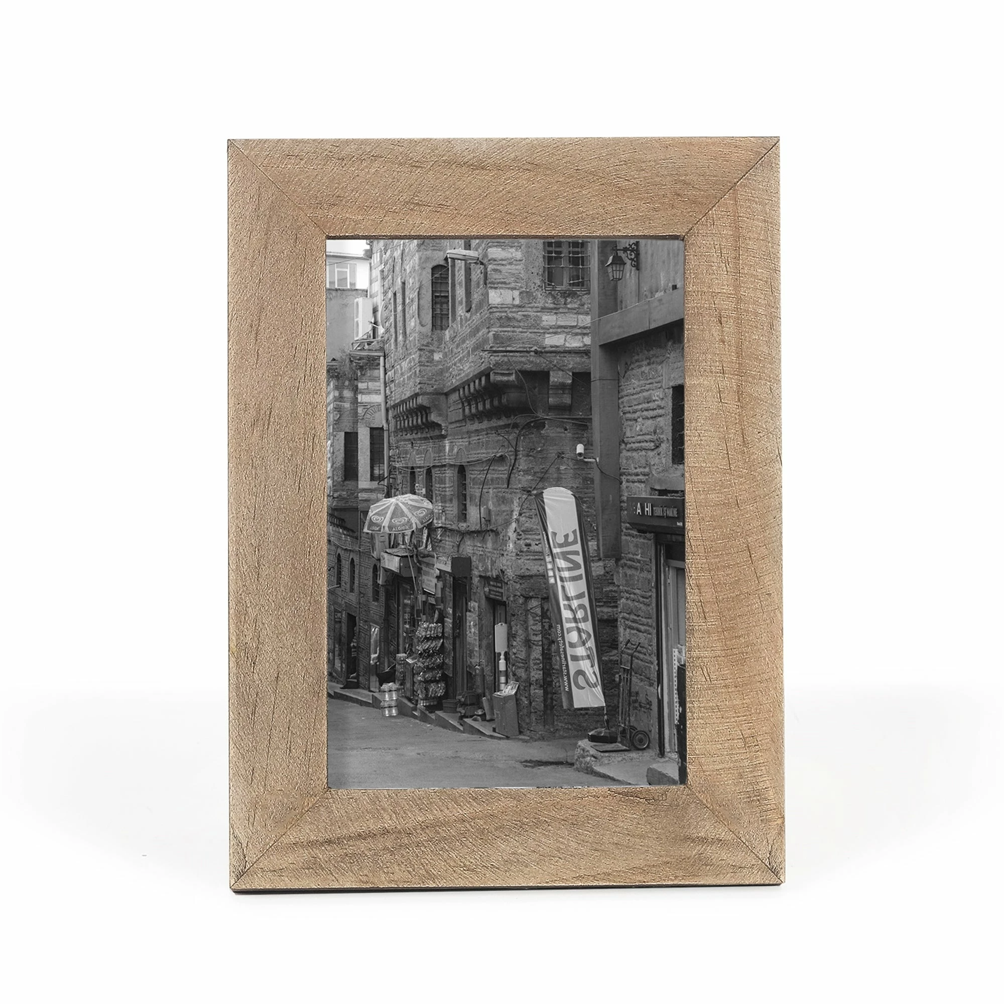 Display your favorite memories with this wooden picture frame. This wooden photo frame comes with a mat, a glass pane and an easel base. Choose from two finishes, with or without the mat, to fit your photos.