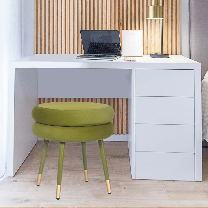 【PADDED SEAT COVERED WITH FABRIC】The seat is filled with thicker resilience sponge to relieve the fatigue of sitting for a long time, And the ottoman is covered with double layer flannel cushion, making it softer and more comfortable. This vanity chair is easy to keep clean, you can wipe the stain with a wet towel.