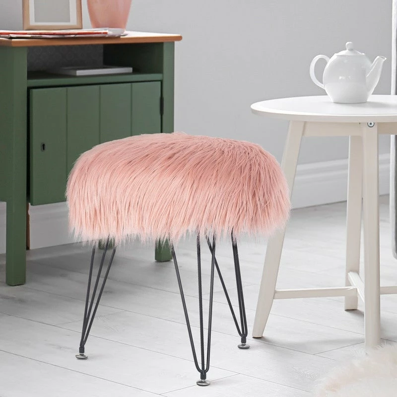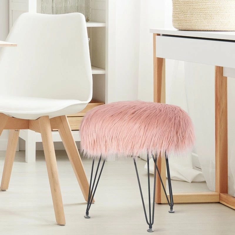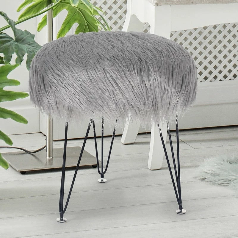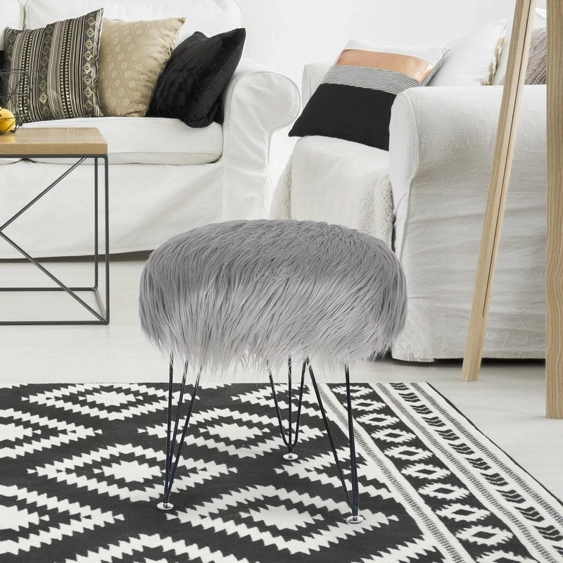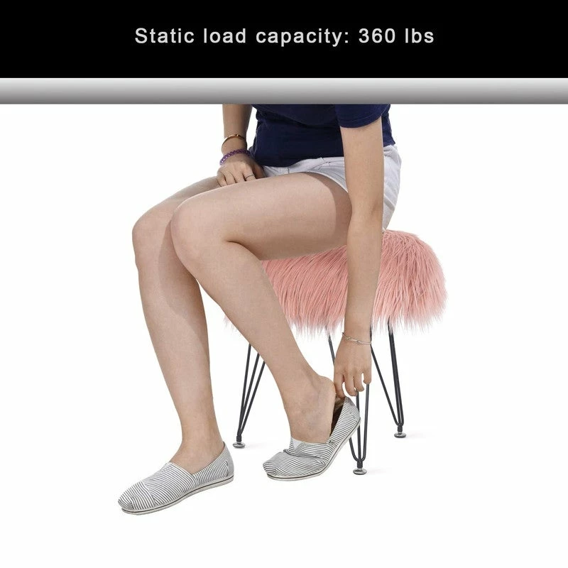 ใStylish Designใ Our round ottoman stool features furry padded seat which was supported by extremely steady metal legs, this elegant accent piece provides both functionality and a focal point of color and styleใSturdy Constructionใ Thick cushioning creates a plush place to sit or to rest your feet, while the sturdy base offers added stability. In addition, each leg with non-slip pad to help keep it in place and also prevent scratches on the floorใMulti-Functionalใ This functional footrest can serve as a stylish vanity stool, idea for walk-in closet / entryway, or being placed at the end of your , or just modernizing your living-room, hallway or guest-room decor etc. The faux fur upholstery lends classic beauty while standing up to regular use in your homeใEasy Assemblyใ Convenient design makes it simple for you to screw 3 legs on within 10 minutes. The ottoman is the perfect addition to any room that can double as a comfortable seatใPerfect Sizeใ Measured by 16.1″L x16.1″W x 18.3″H. It can hold up to 360lbs, normally seats about 1-2 adults