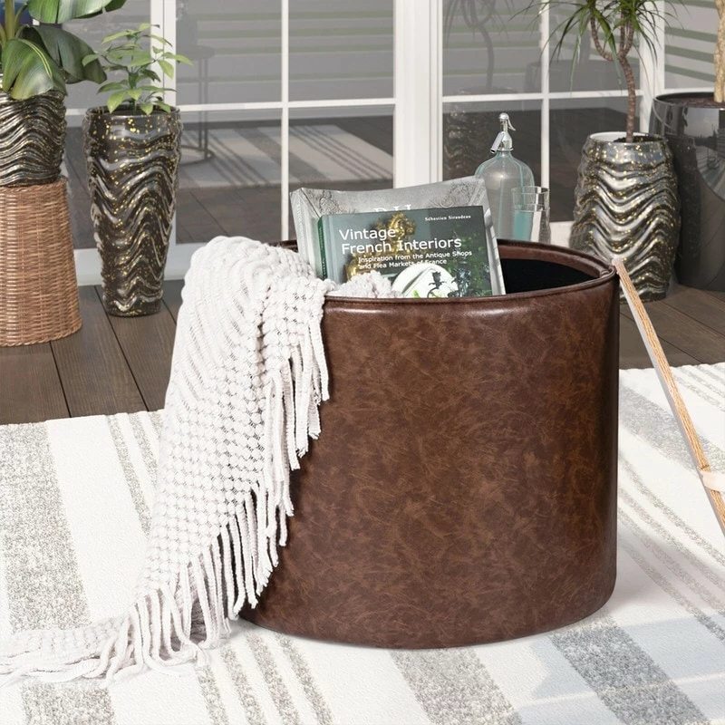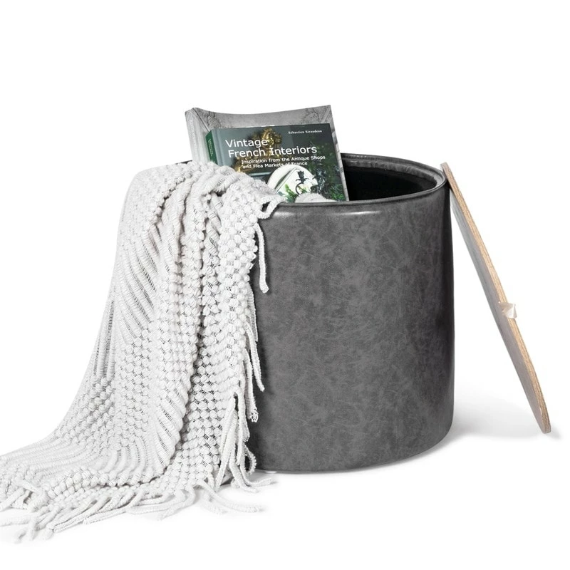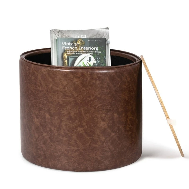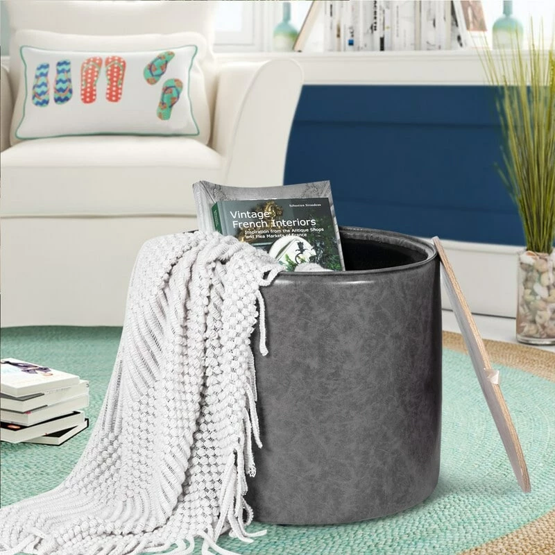 DURABLE: Quality craftsmanship using expert high-quality faux leather. The foot stool is built with a sturdy wood frame.HIDDEN STORAGE BAR STOOLS: As Side Table, Stools, Storage, Ottoman and Seat for your couch or sofa even a nightstand in your bedroom. Spacious hidden storage box for loose odds and ends. Can store sundries, toys, remote controls, books etc.SPECIAL DESIGN: Round side table stool with removable wood lid, perfectly with modern home accent furniture in your home or office.Good-looking Appearance: Nice color well matched your home decor, modern classic style with colorful choices is perfect for any decor room. Excellent gift for your friends, family, relatives, practical and useful.Dimensions: 18.7″ (L) x 18.7″ (W) x 15.6″(H). Weight: 11 lbs. No assembly required. Easy to clean.