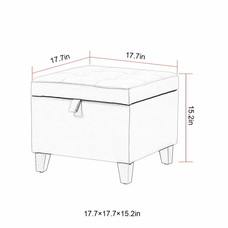 -Covered in a high performance, easy care fabric-Stylish button tufted lift top with easy storage-Accent, modern & classy design-Total Dimensions: 24″ * 18″ * 18″, inside size: 21″ * 14.5″ * 12.5″-Simple assembly required