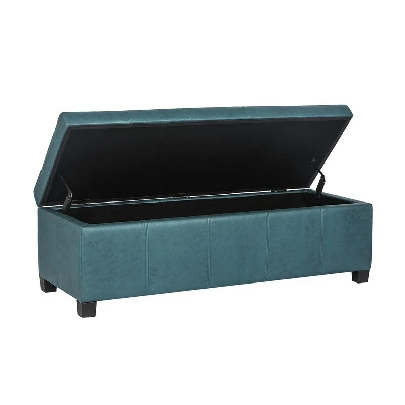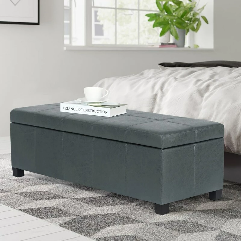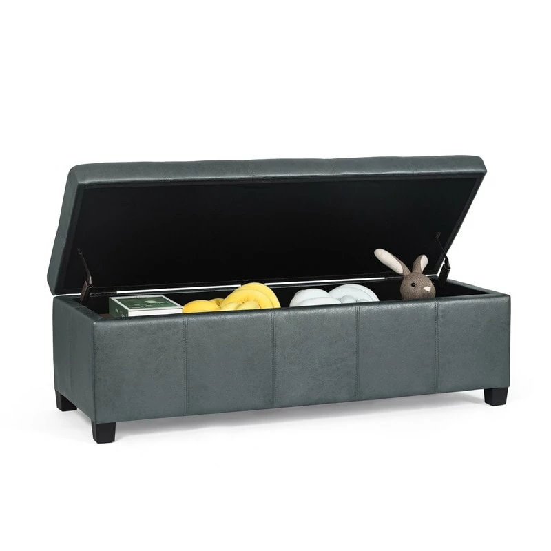 FIRM & SECURITY: Sturdy construction with a hard wood frame, plastic legs, fabric upholsted top. The inside of this storage ottoman is connected by safety pressure hinges and sturdy hardware accessories. They can keep the lid always open to prevent the bench from closing suddenly, or they can gently and slowly fall when you want to close the lid, so as to ensure that you are safer and more convenient.ย