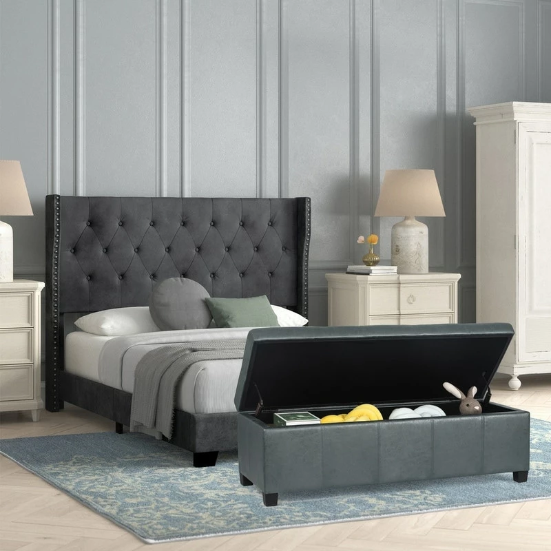 STORAGE OTTOMAN: The large volume of this ottoman is enough to meet your various needs. this ottoman bench can easily hide all the messy things, and you can put this bedroom bench at the end of bed to store blankets and pillows, this storage ottoman can also be used as a toy box.ย