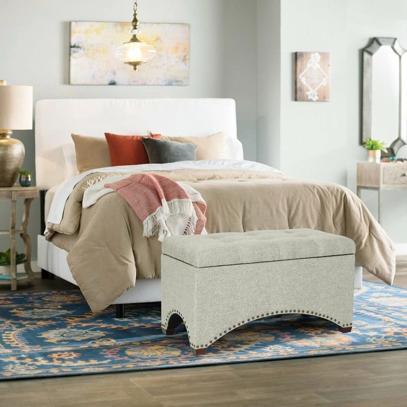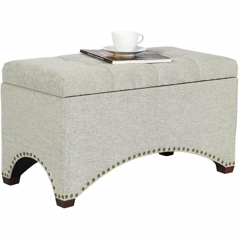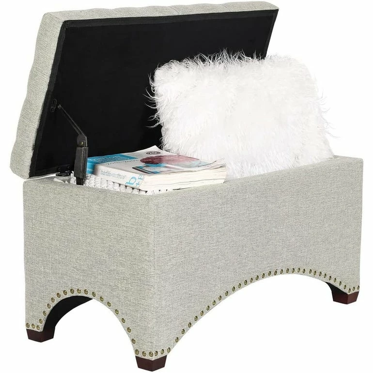 STABLE AND DURABLE: Our Storage ottoman made with thick upholstery padding, sturdy solid wood legs and and safety lift top hinge, Stylish Nail-head Trim .designed for long and lasting use.Durable solid wood legs can withstand a weight of 300 pounds.ย