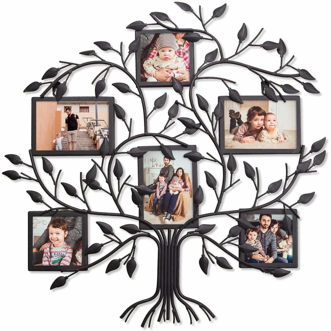 High Quality Metal:The display stand is made of quality metal. Solid wood frame covered with glass. Independent and durable, not easy to scratch, and will not lose clarity over time. Black Color with Rustic Finish, It is corrosion resistant and durable.6 Opening Photo Frames:Holds 6 images: 3-4x6and 3-4×4. Total dimensions: 24x24x0 8. Slim frames surround 6 images, strewn among the leaves and branches of a simple, iron tree.2 Shape Display Frame:This beautiful metal tree frame with 2 kinds of picture frame, Rectangular and round. Will look fantastic in any room. Easy to Hang on the Wall, Simple to Load with Removable Back PanelsFamily Tree Design:Unique “family tree” Style, Intricately carved branches and leaves artfully display your precious family pictures, show how your family tree has blossomed.Wide Application:The photos display tree can be placed in a variety of conspicuous places such as desktops, counters, desks, etc, and can also be used in cafes, bars, banquets, weddings, etc.