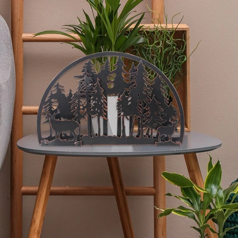 PINE TREE AND DEER WALL ART: The entire forest & deer have been created in high grade metal with rust tone. Rust-resistant and easy to clean.The exquisite laser cutting technology of this metal wall decor makes the trees and the deer look lifelike.Best for home decor or as a housewarming party gift, anniversary gift, birthday present, or Christmas gift.ย