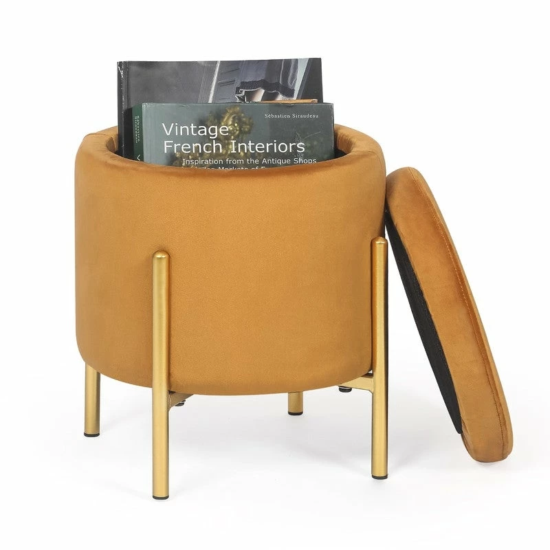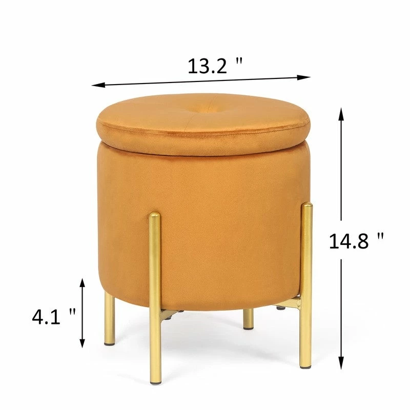 ใThe Upgraded OttomanใThe new version storage ottoman, using quality velvet fabric and padded with high density resistant memory sponge, which provides ultimate comfort and support as well as durability to withstand the wearing. The thickened wood frame and golden metal legs, with the exquisite craftsmanship, make our ottoman more durable and stable than ever, the ottoman built to last a lifetimeใModern Classic Mid Century Designใ The velvet storage ottoman with a mid-century style. The fine- textured velvet goes with the gold finished metal legs, which creates a noble classic luxury to complement your home decor, and the beautiful color combination makes the round/square footstool more stylish and attractive, which adds a unique charm in various decorative occasions. A wonderful gift for your loved one and a perfect housewarming gift for your friends!ใOttoman with Storage SpaceใThe ottoman measures at 13 “(D)x 13″(W)x 14.8″(H), the thickened metal legs can withstand the full weight capacity of 260lbs, the rubber pads for the ottoman feet protect the floor from damage. Underneath the stool cover, a hidden storage space for tucking away small household items, like toys, blankets, books, snacks extra, therefore creating more space in your home, practical and useful, a truly space saver!ใEasy to Assemble & VersatileใSimply screw the metal leg into the ottoman with provided 8pcs screws and done. It’s more than an ottoman stool, also can be a vanity chair or a coffee table. It can be put anywhere, suitable for living room, bedroom, office, fashion closet, dormitory, apartment etc