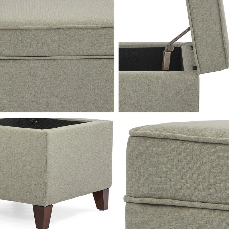- SAFETY DESIGN: Constructed with a sturdy corner-blocked frame and strong feet. Padded hinged lid stays open for safe access to storage space inside—great for your blanket and throw pillows.
