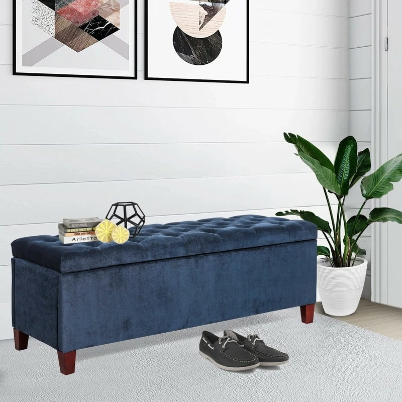 • DIY ASSEMBLE: What you received is all the parts, you need to assemble it yourself. There are installation drawings in the box. It is very simple to install according to the drawings (about 20 minutes). Exercise your hands-on ability and enjoy it.• SOFT AND COMFORTABLE: The rectangular storage ottoman bench is filled with high elastic sponge to relieve the fatigue of sitting for a long time. And the ottoman is covered with fabric,is very comfortable to sit on it.• LARGE STORAGE SPACE: This 47″ long storage bench has enough space to store your blankets,pillows,cloths,books,kid’s toys,etc. Product Dimensions: 47″D x 17.7″W x 17.3″H• STURDY & SAFETY: Wood frame and safety hinge ensure that this ottoman has a long service life and is safe for children, and will not pinch their fingers.• MULTI-FUNCTION: This item is a storage ottoman,end of bed bench,living room bench ,extra seat or entryway bench. It can also replace your sofa or sofa table.• Material: Wood+Linen fabric + sponge