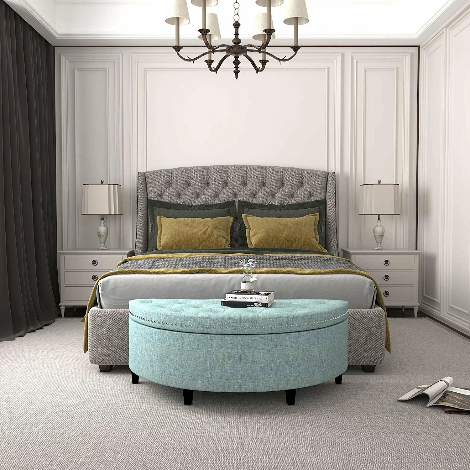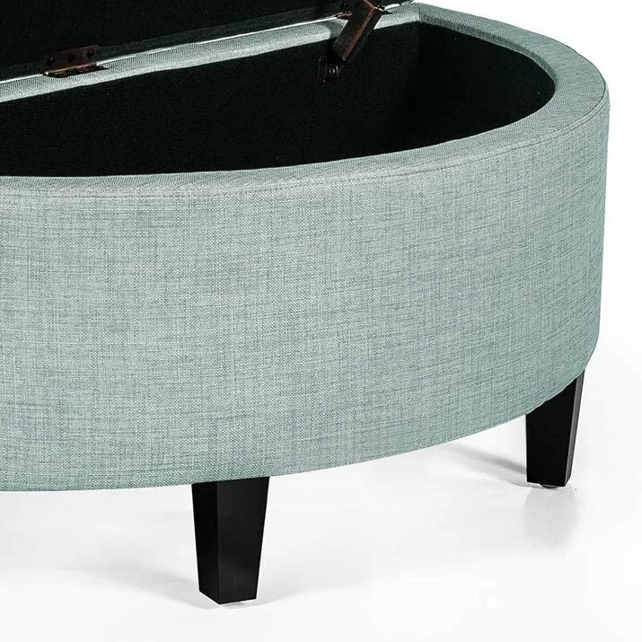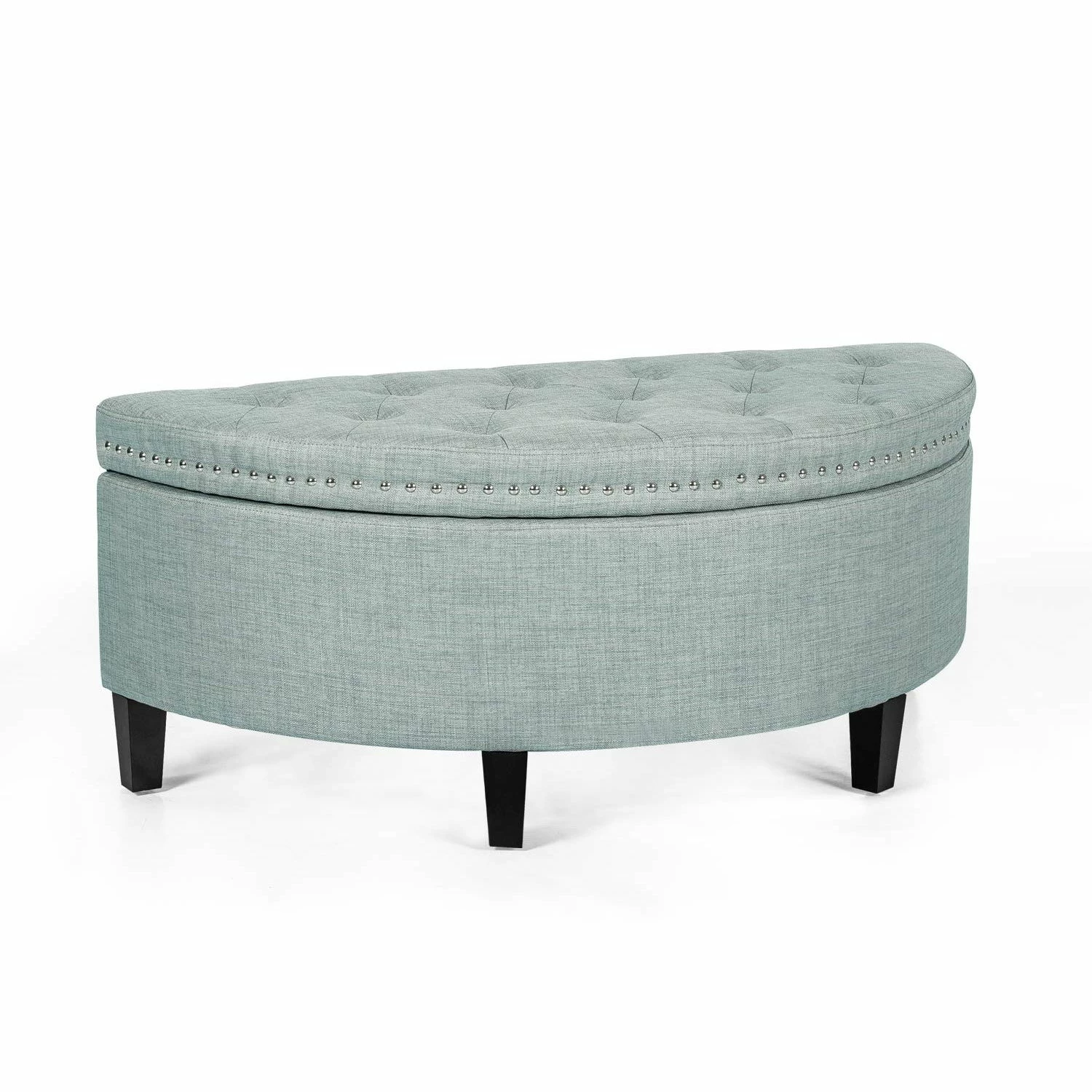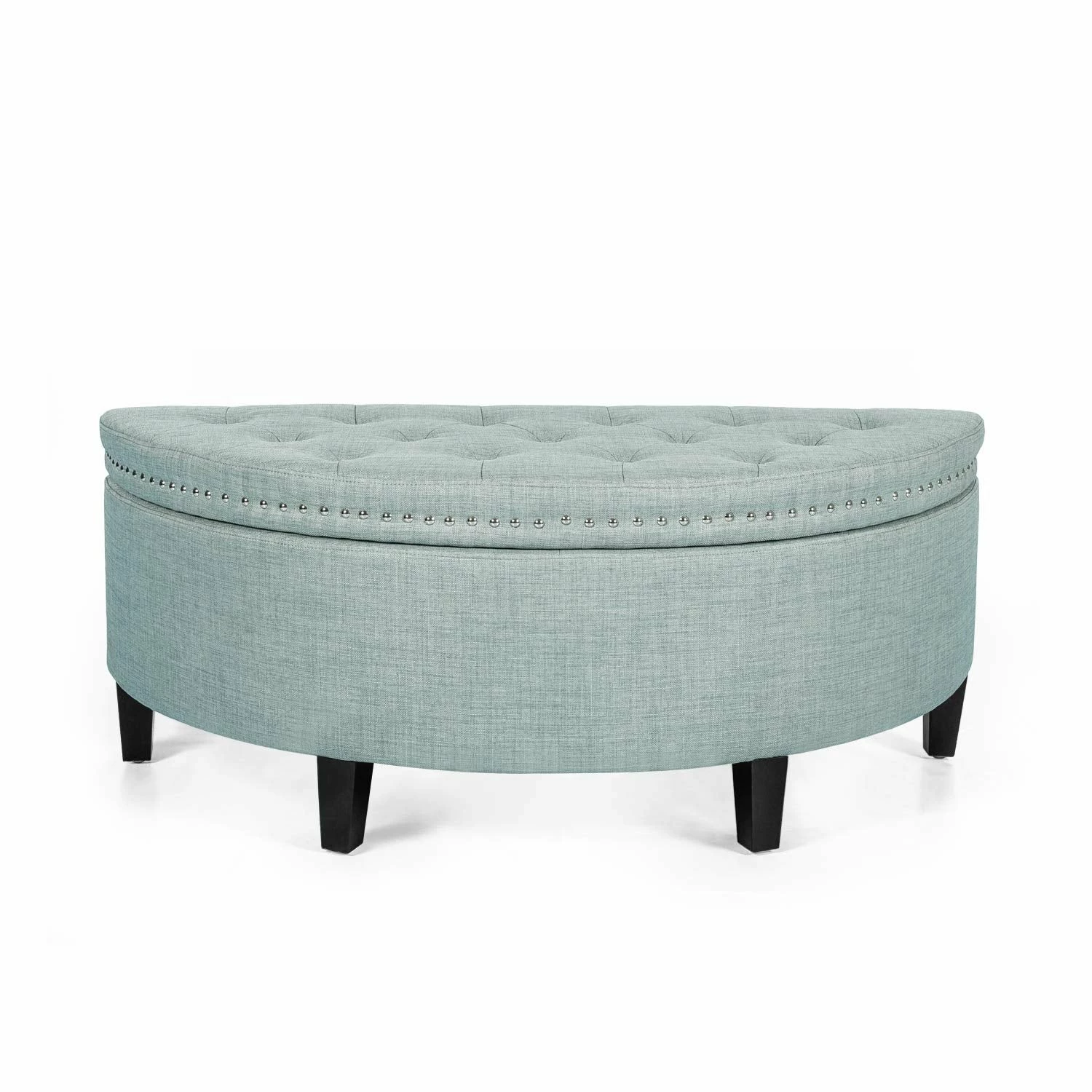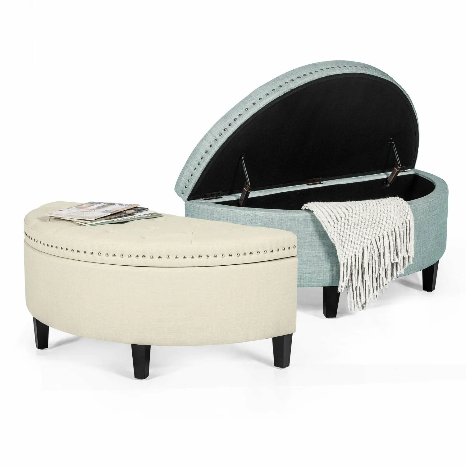 Simply chic and perfectly posh in its presentation, this ottoman is part of a refreshing update to your bedroom or living room. The smooth upholstery is light and lovely, offering a pretty element to your decor. The plush yet firm semi-circle top opens up to reveal storage space for a bit of helpful convenience.