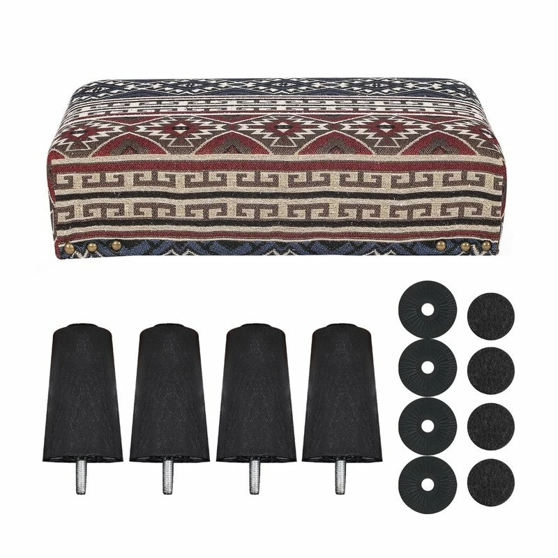 SMALL OTTOMAN DIMENSION: 16.3 x 11.8 x 8.1 inches. This small foot stool has perfect small size, can be placed near a sofa, under a chair or even under a table. Rectangular footstool saves space and can be moved as needed, suitable for home use.SOFT & STURDY: The small ottoman is made of fabric material, with high-quality and high-density sponge. Sturdy frame base, black conical plastic legs to ensure for years using, perfect for comfortable foot rest.EASY ASSEMBLY: You need to install 4 legs by yourself, It is simple, just need to screw the 4 legs of the stool. Please note: The legs are in bottom pocket. and you also can put some small things in the bottom zipper pocket.ANTI-SLIP: The plastic legs with anti- skidding foot pads prevent sliding while protecting your floors from scuffs and scratches. You can just kick your feet up and be totally relaxed and don’t fear of scratching the floor.