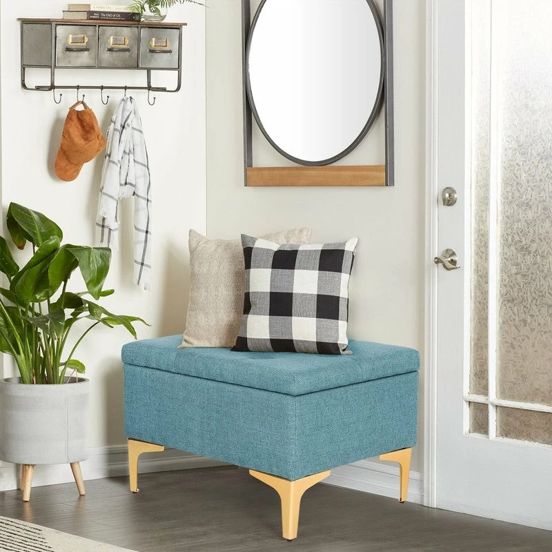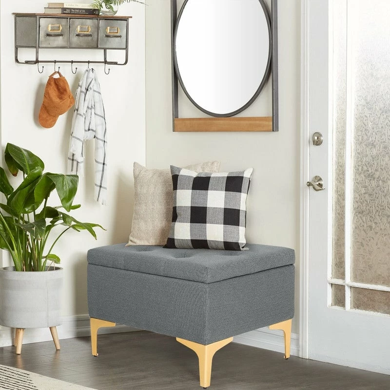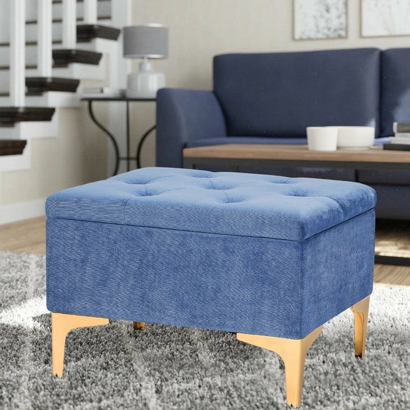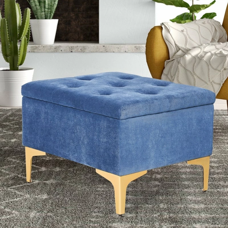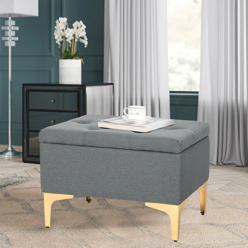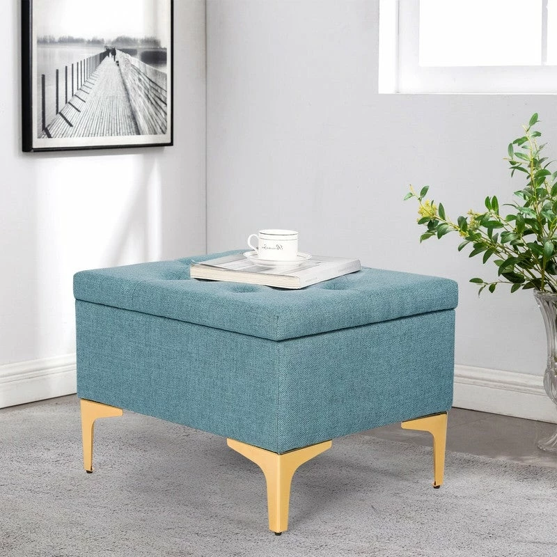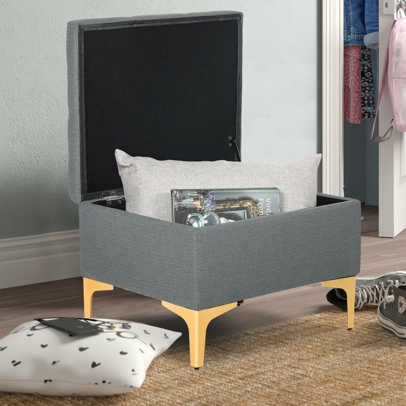 โข ใModern DesignใUnique design with modern and stylish elements with gold metal legs. It will catch the eyes in many occasions. Product Dimensions: 19.7″D x 16.3″W x 13.8″Hโข ใMultiple FunctionsใGreat for use as a footstool, vanity stool, side table or as an extra seat, and also can be used as a storage box to organize books, pillows, clothes, blankets, toys or others. Not only makes the room noble and elegant, but also fully demonstrates comfort and functional diversity.โข ใSturdy And DurableใConstructed of a solid wood frame, matching with gold metal legs which attached non-slip white shackles, equipped with lift top lid and safety hinge. It prevents the floor from scratching and sliding around effectively, and also more safe and stable.