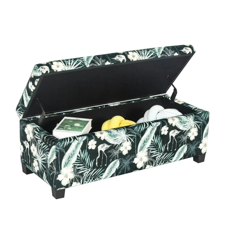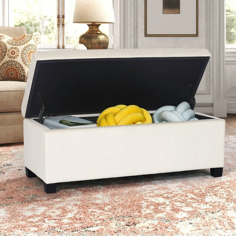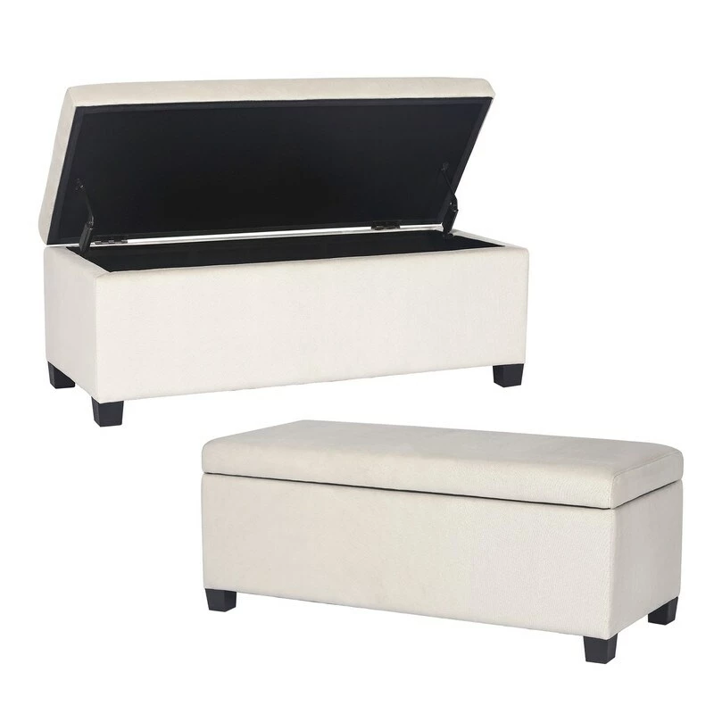 STORAGE OTTOMAN MATERIAL: Soft fabric upholstery with high elasticity sponge, sturdy construction with a wood frame, Plastic legs with non-slip pad, ensure for long time using.