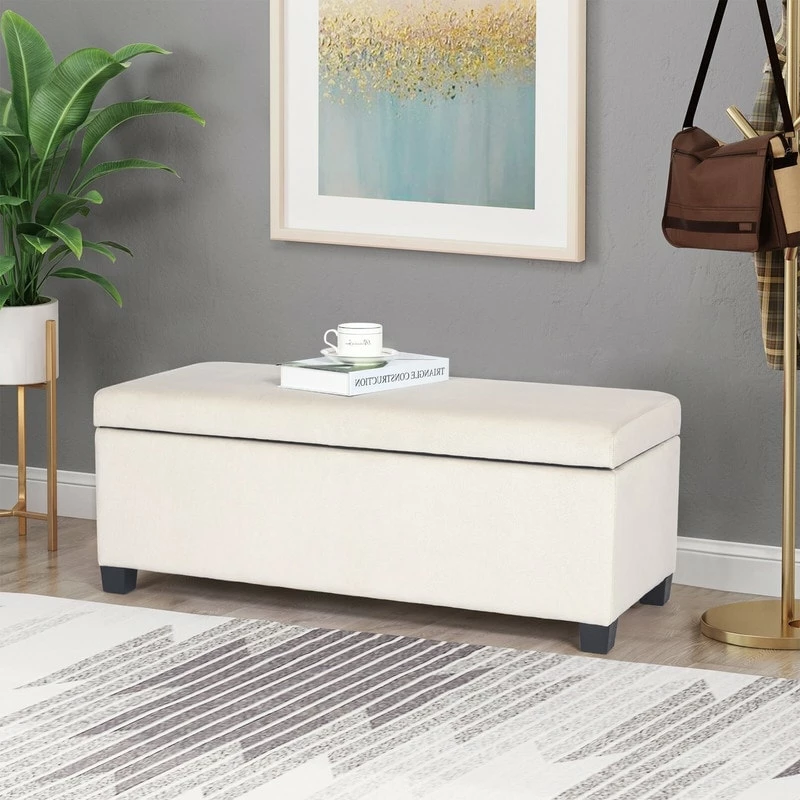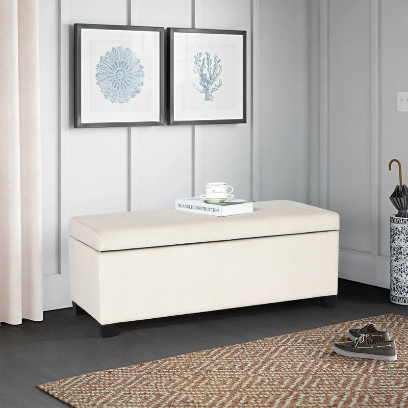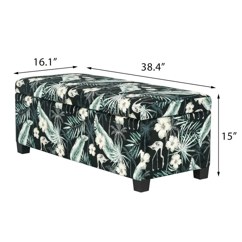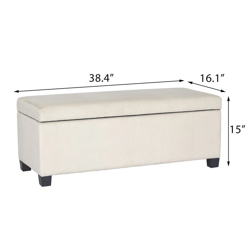 MULTI-FUNCTION: The storage ottoman not only provides large storage room, but also offers you a comfy bench seat. The versatile ottoman can be used as an entryway bench, extra seating, end of bed bench, footrest, or coffee table. DIMENSIONS: 38.4 x 16.1 x 15 inches, storage space: 34.6 x 12.2 x 9.45 inches. Perfect size, spacious storage space. Good fit by your living room, window, entry way and bedroom.