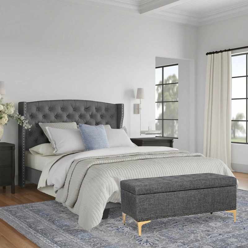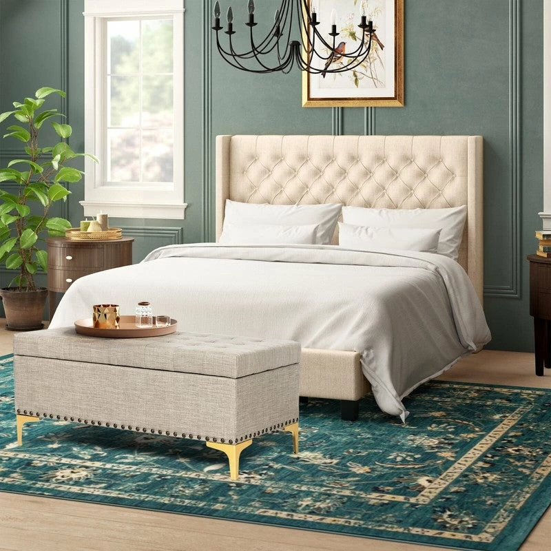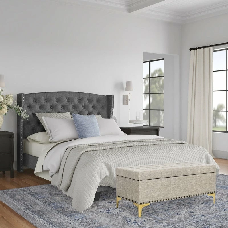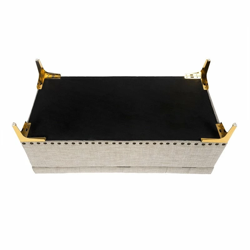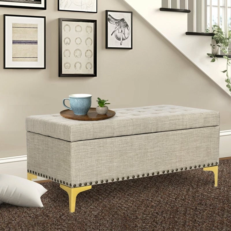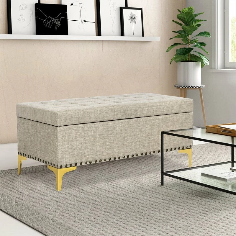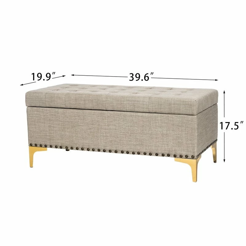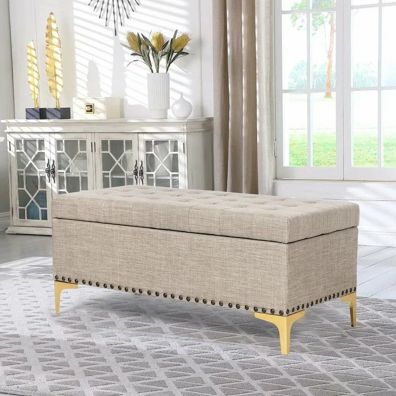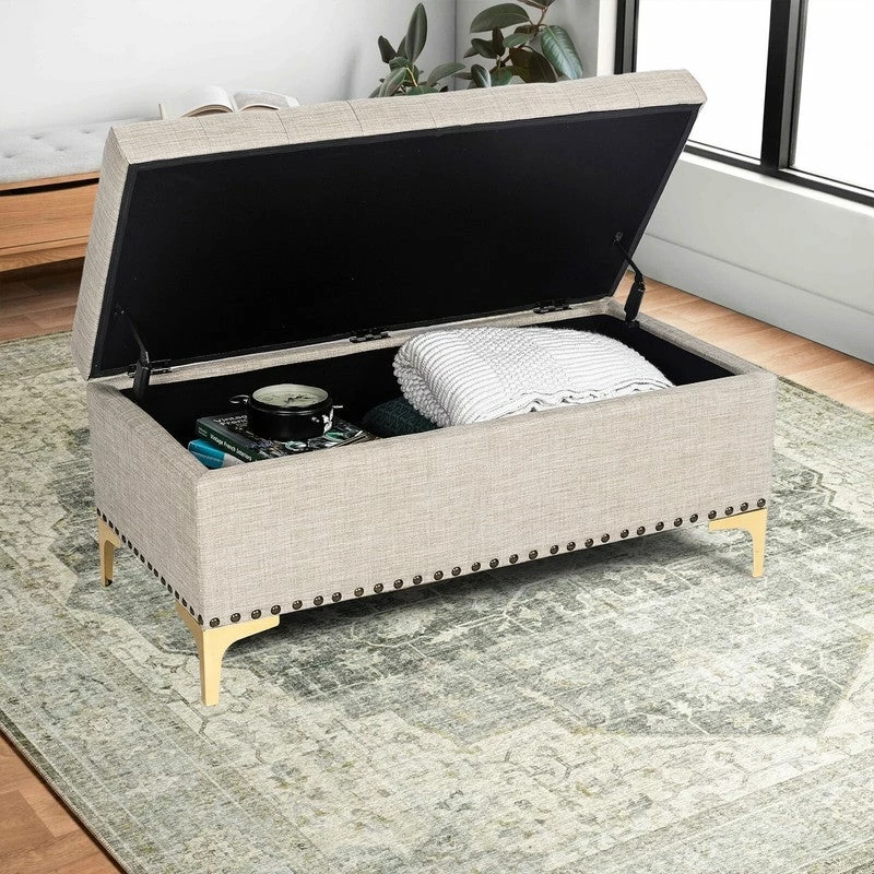 COMFORTABLE AND STURDY CONSTRUCTION- Our Storage ottoman made with thick upholstery padding, sturdy Metal legs and and safety lift top hinge, Stylish Nail-head Trim .designed for long and lasting use.Durable solid metal legs can withstand a weight of 300 pounds.Β