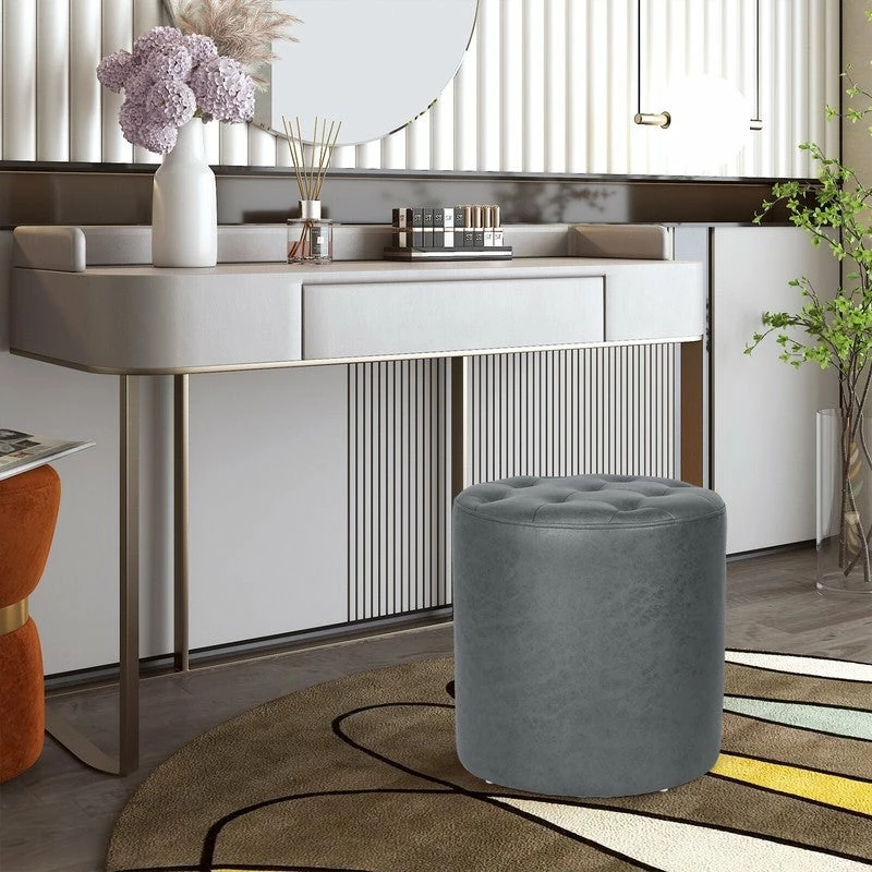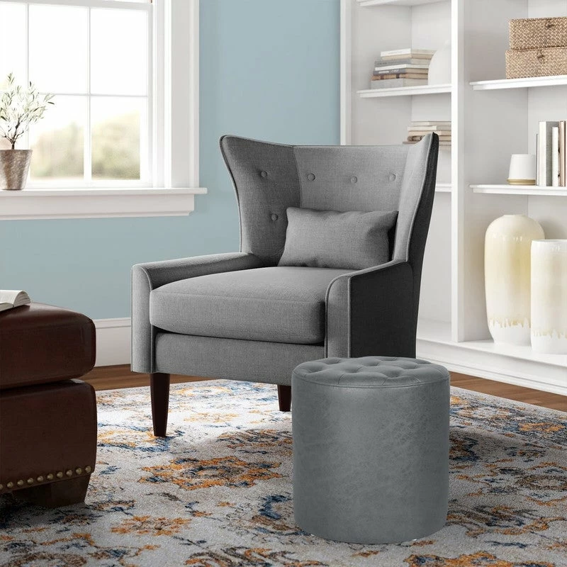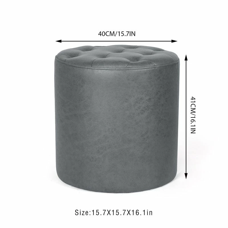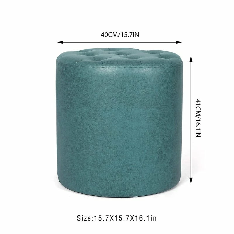 DIMENSIONS: This Foot Stool is 15.7″ L x 15.7″ W x 16.1″ H. Choose an accessory that is the perfect size for you and your furniture. You will love how much your space can transform with the simple addition of this charming ottoman.MATERIAL: With the look of a pouf and the stability of an ottoman, this piece is a must-have addition to your living room or bedroom. Upholstered in leather, this pouf has a firm foam-fill that will support guests at game night or your feet after a long day.EASY TO MOVE: Due to their small nature and versatility, an ottoman footrest can easily be moved around to accommodate guests. Position it in front of a sofa or armchair so that you and your guests can enjoy its versatile uses.COMFORTABLE &STURDY: The footstool is built around a sturdy wood frame and enclosed using the soft leather and foam filling.