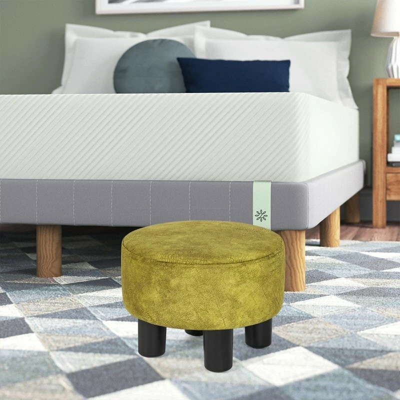โข OTTOMAN DIMENSIONS: 12.4″ Length x 12.4″ Width x 9.8″ Height , Leg Length: 3.5″. It is not too low or high, this nice ottoman little stool is great for resting your feet on.โข SOFT AND COMFORT: This small footrest is made of durable soft material, sturdy frame base, whole piece of high quality thick sponge to ensure for years using. The right balance of soft and firm,perfect for comfortable foot rest.โข EASY TO INSTALL: You need to install 4 legs by yourself, It is simple, just need to screw the 4 legs of the stool. This cute little foot stool has perfect small size, lightweight and easy to move.โข ANTI-SLIP PAD: Plastic legs with anti- skidding foot pads prevent sliding while protecting your floors from scuffs and scratches. You can enjoy it without slide and fear of scratching the floor.โข MULTI-FUNCTION: This stylish footrest can be used when getting dressed in the bedroom, putting on shoes at the entryway, having a rest on chair or using as a footrest under desk. It’s also a step stool for your pretty pets.