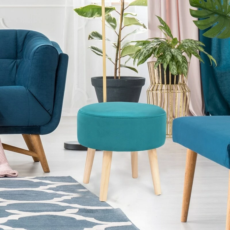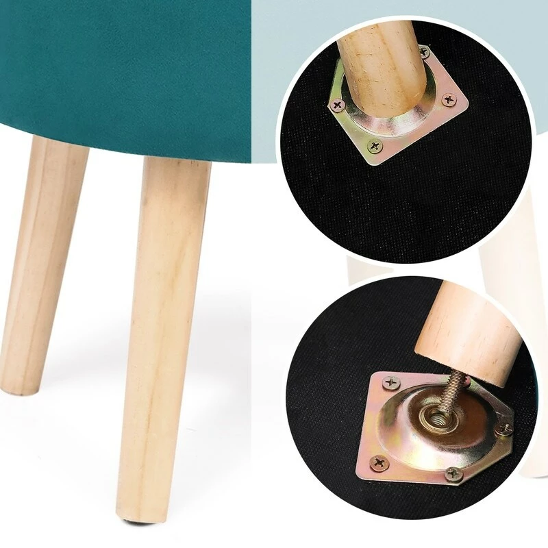 Stylish Design: Slick upholstered round Ottoman footrest are wrapped in ornate velvet upholstery for ultimate comfort, 4 solid wood legs add a modern ambience to your room,4 rubber pads on the bottom to provent floor scratches and non-slipMulti-Function: Rest your feet when you lie in sofa, can also make a makeup stool while you get dressed. This velvet vanity stool can be used as a step stool, footrest, shoe bench, coffee table, flexible seat and so onPerfect Size: Dimensions:15.3″ L x15.3″ W x14.7″ H. Saving space, compact design is suitable for small areas. It saves you a lot of space and if you don’t need it, you can put it under your deskEasy to Install: Just screw on the 4 legs and this cute little stool is ready to serve you