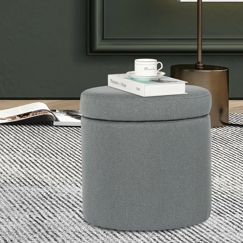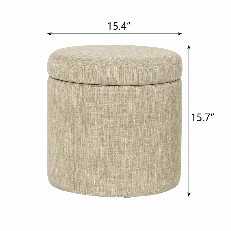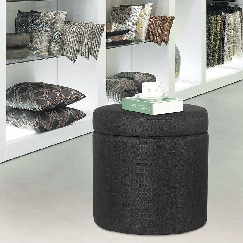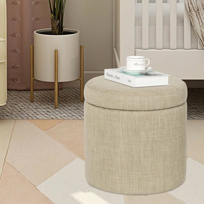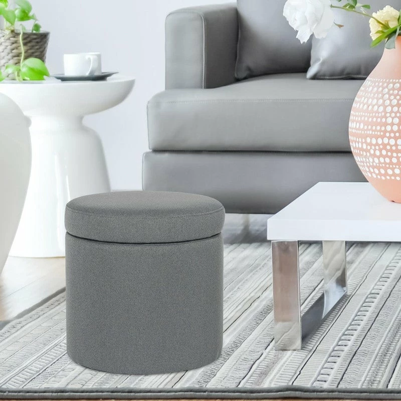 ROUND STORAGE OTTOMAN: The round storage ottoman, upholstered in soft and durable fabric, well constructed with wood frame and anti-slip pad, which ensures long durability & stability. REMOVABLE LID: The round storage ottoman with removable Lid, an easy lift off lid, the top is very easy to open and close without loud noise. It is ideal in any space.