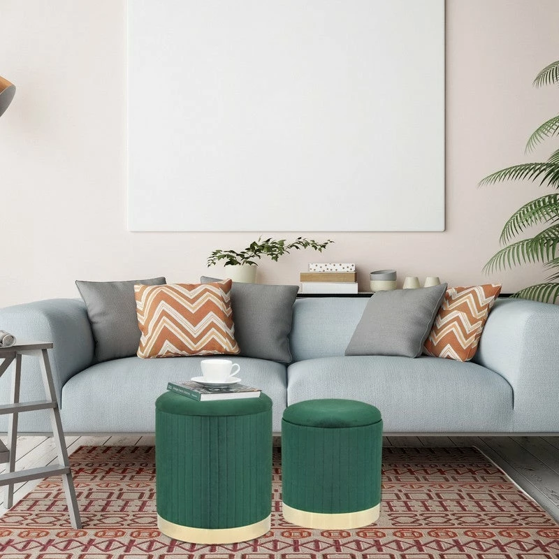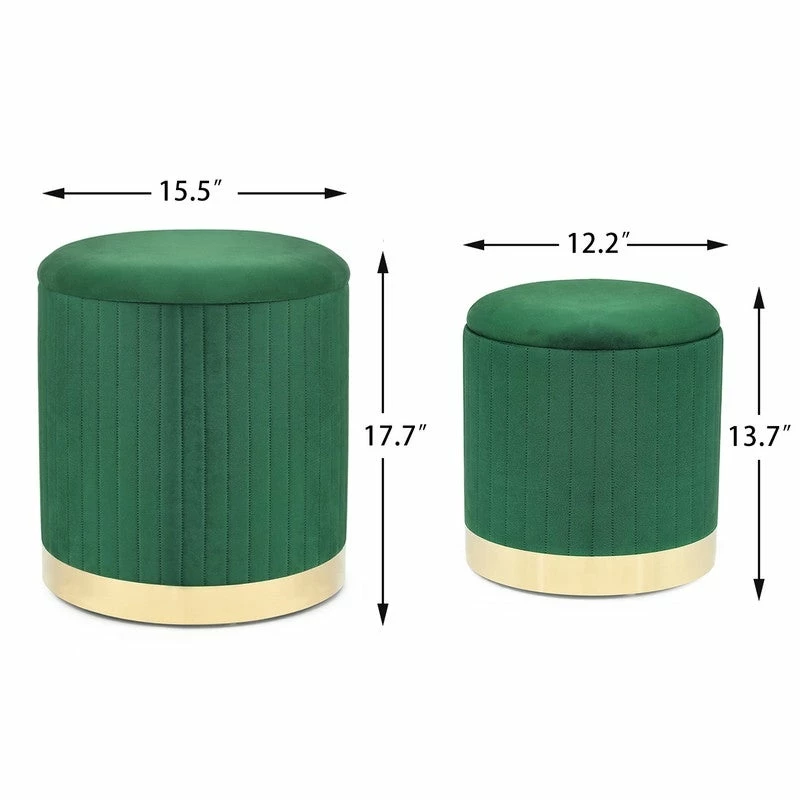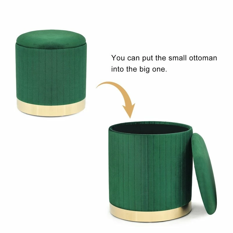 - 【Perfect SIZE:】15.5″L x 15.5″W x 17.7″H (L) 12.2″L x 12.2″W x 13.7″H (S) .Good fit under your desk.You can put the small one into the big one .It is very suitable for space saving when not in use. 【COMFORTABLE MATERIAL】Designed with luxurious and comfortable velvet fabric, filled with high density sponge making this ottoman very comfortable for sitting.