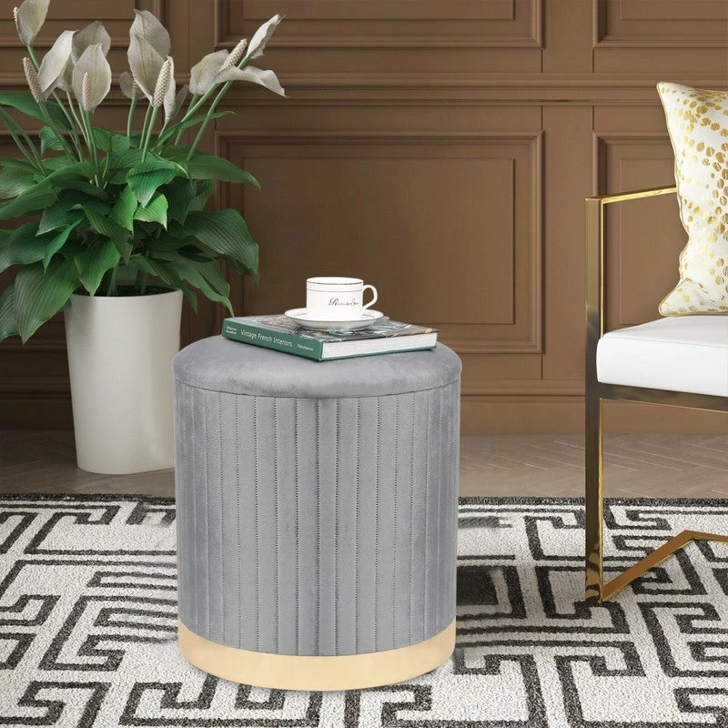 【MODERN DESIGN】Gold Plating Base make this ottoman more Sturdy.Designed for long and lasting use.Four Anti slip rubber pad under the base will Protect your ground from scratches.
