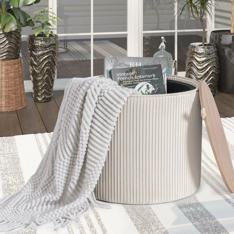 - • DURABLE: Convenient ribbon handle makes the storage open easily. The round storage can store books, blankets, toys, pillows or others. Not only can use space effectively but also makes the room tidy and clean.