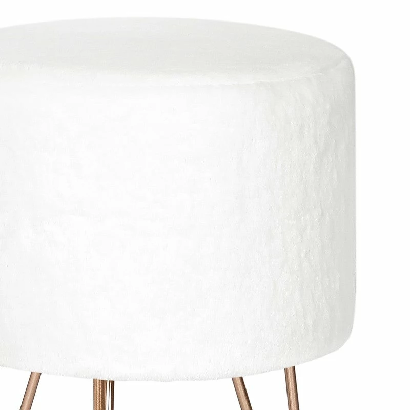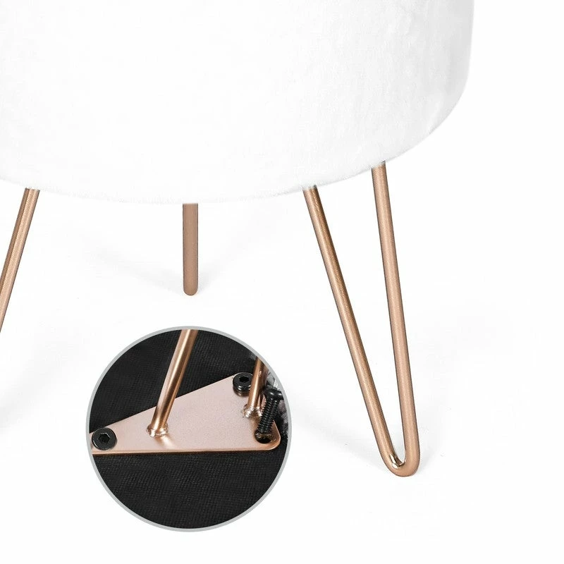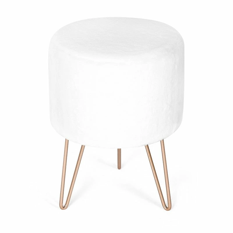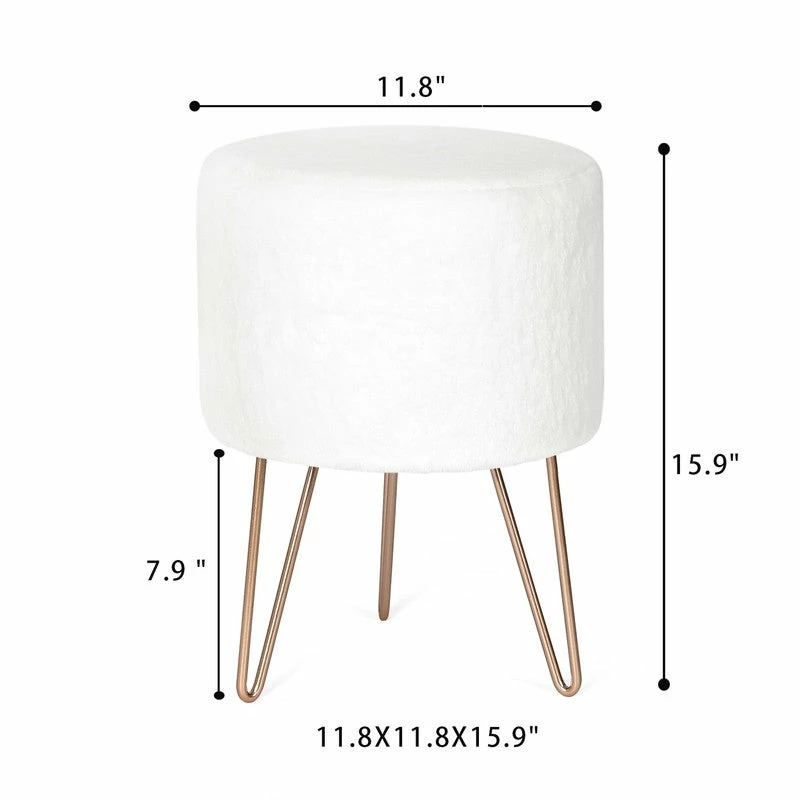 VELVET FOOTREST STOOL: The luxurious feel of the velvet upholstery is soft, cozy and comfortable. The top was padded with a thick cushion helps you to sit or to rest your feet more comfortably.STABLE METAL LEGS: Featuring an extremely steady gold metal leg, this elegant accent piece provides both functionality and a focal point of color and style that seamlessly blend with your main furniture to create a dynamic and cozy interior space to come home to.PERFECT SIZE: Entire ottoman measures approximately 11.8″ Dia x 15.9″ H. Add one in your entryway for easy shoe removal or in your living room when entertaining your friends. It’s also easy to stack or put away under desk if not use.EASY TO ASSEMBLY & MAINTAIN: Super easy to assemble this velvet foot stool in 5 minutes. This vanity stool ottoman is also easy to care for and maintain when daily use. Legs are removable for storage when not in use.STYLISH DESIGN & MULTI-FUNCTIONAL: Such a modest and convenient design will surprise you a lot by decorating and beautifying your house without occupying much space. Rest your feet when you lie in sofa. Provide extra seating as round ottoman chair. Suitable for any home, office, college dorm, apartment, etc.