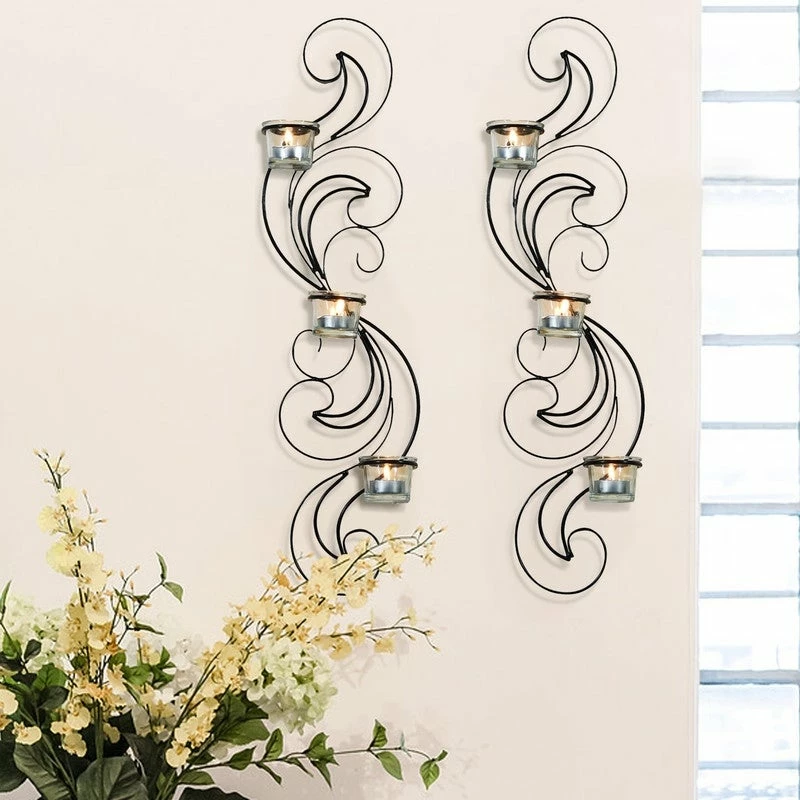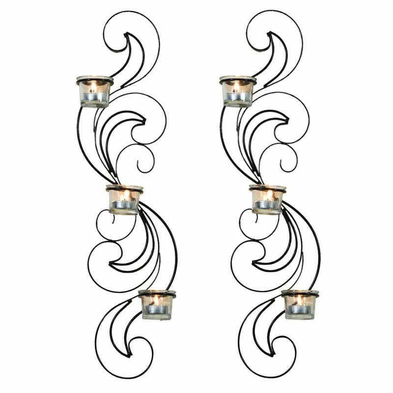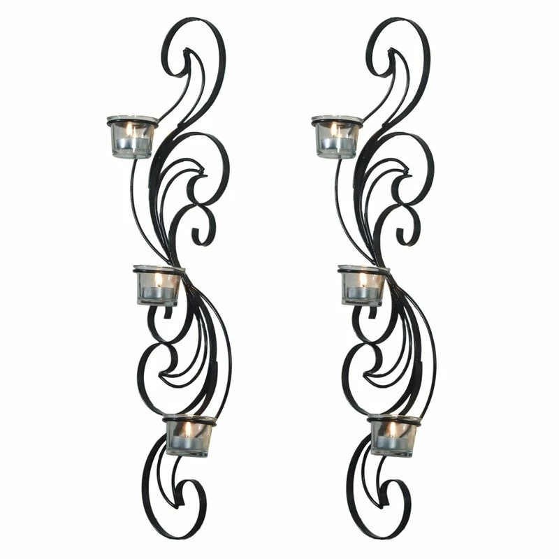 - SOLD AS A PAIRS – sold as a pair (Set of 2), Features a durable wrought-iron twirled vine pattern that adds a modern design to any room. Overall:5.9 x 3 x 24.4 in; (Candles not included)