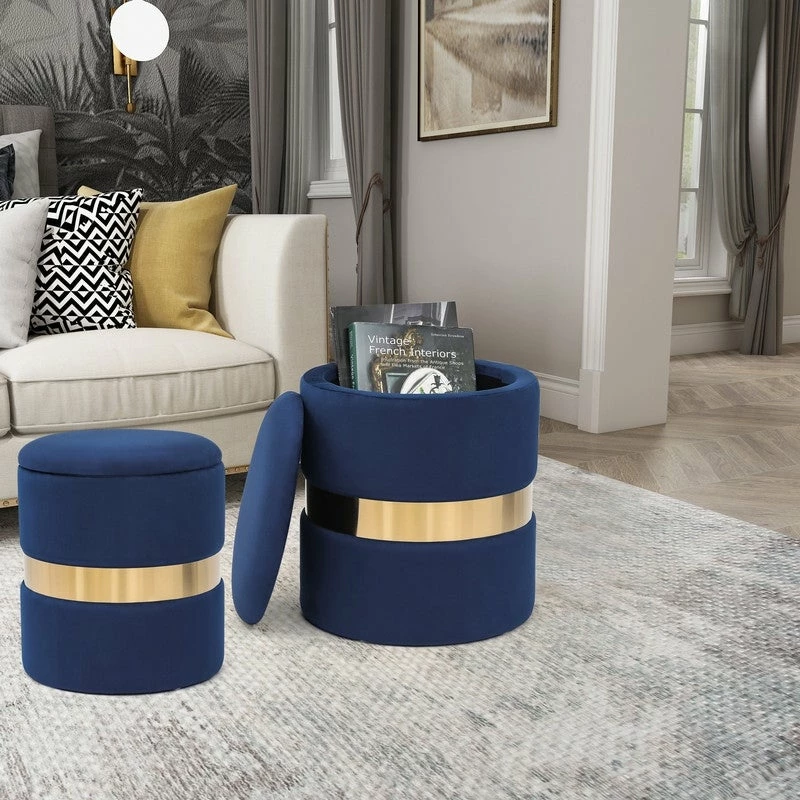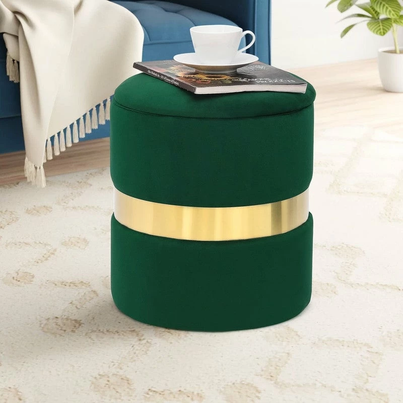 - Multipurpose: Stylish round velvet storage ottoman works great as shoe bench, footstool, toy bin, coffee table, side table, make up stool, puppy step for bedroom or living room.ย