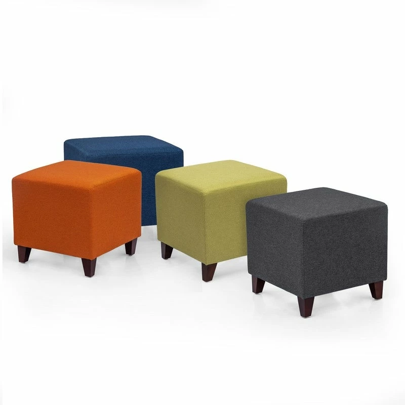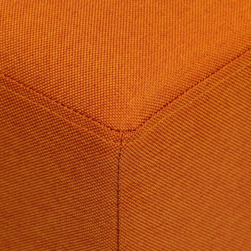 - Add modern appeal to your home with this orange cube shaped ottoman footstool. The fabric upholstery over a high-resiliency foam cushion provides plenty of support and cushion. ย It gives you the perfect place to rest your ย tired feet, and the ottoman could also act as a coffee tabletop accompanying you at night.