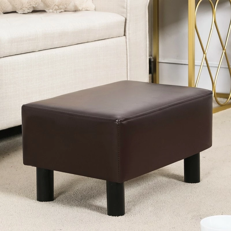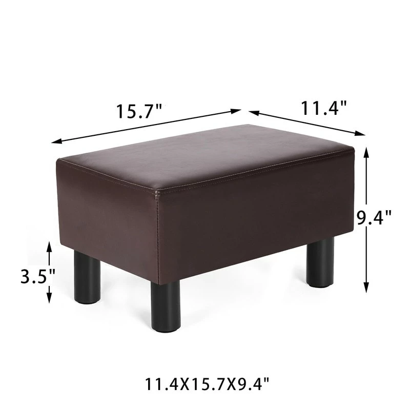 - LIGHTWEIGHT AND EASY TO MOVE: This 15.6″ small footstool ottoman is perfect for feet. This footrest small ottoman stool is compact enough to keep near your couch, under chair or even under a desk. The rectangle faux leather footrest is a space saver, can be moved around as needed, perfect fit for our small apartment, Overall dimension is 15.6″L x 11″W x 9.4″H.ย