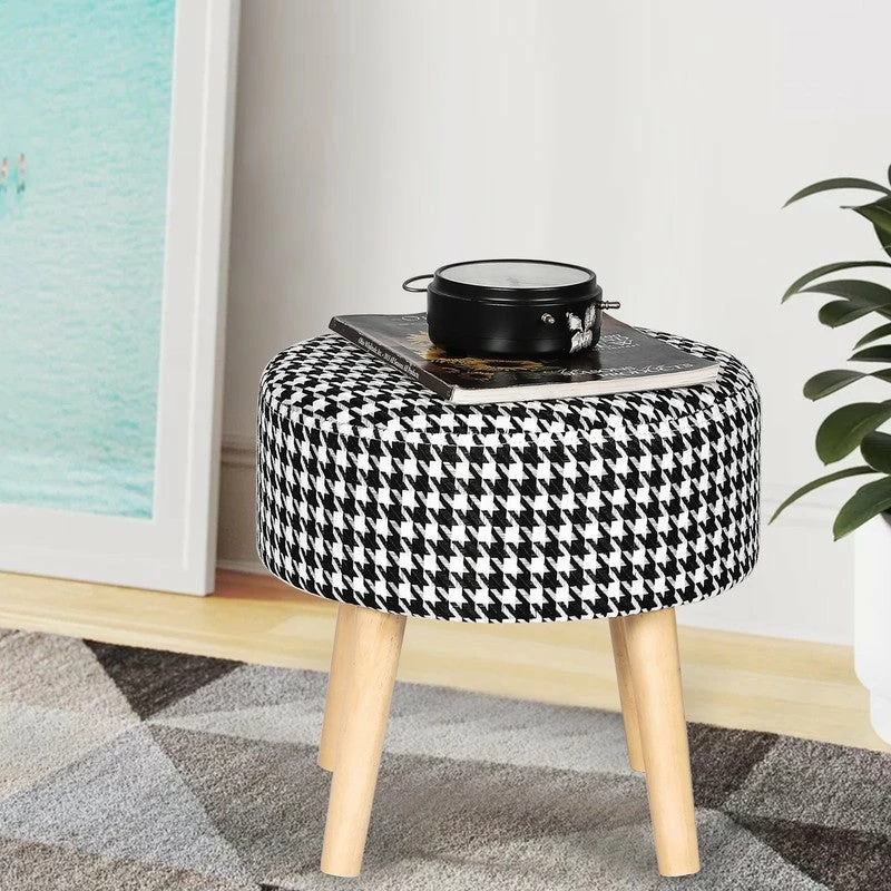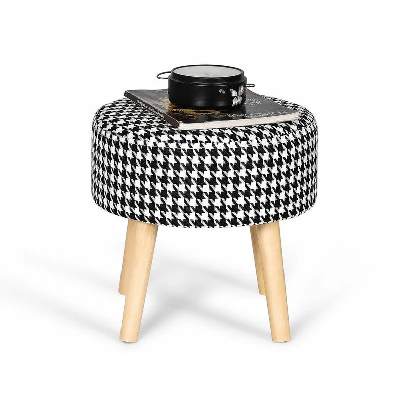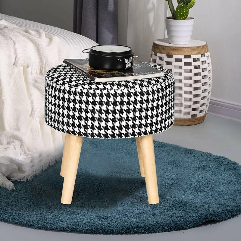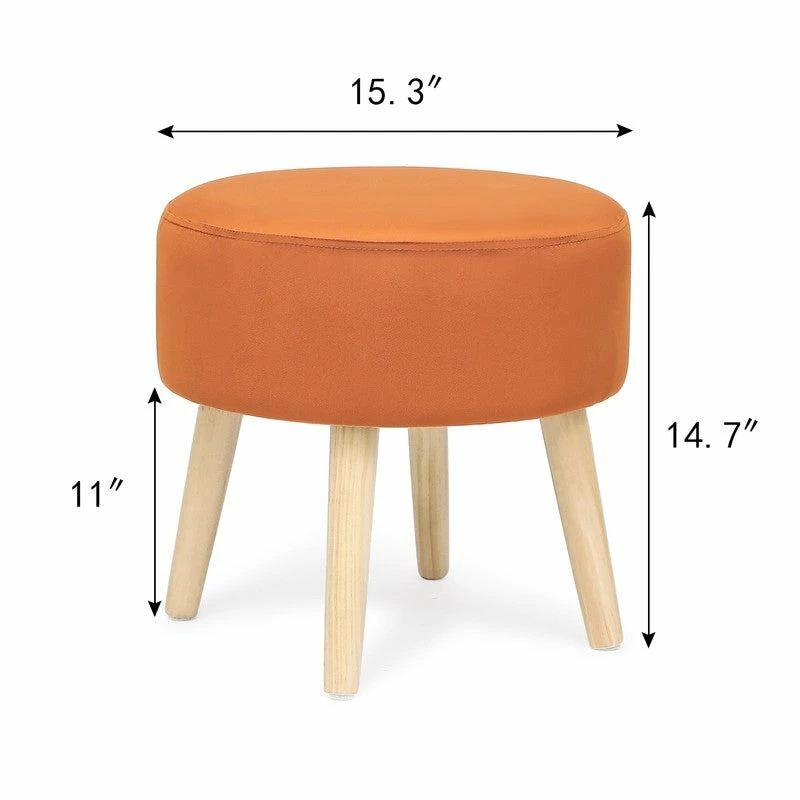 SKIN-FRIEDNDLY PLUSH CUSHION: Supple fabric upholstery over a high-resiliency foam cushion is such a relaxation for your tired feet.SOLID WOOD LEGS : The frame is constructed of quality solid wood,the strong wood legs with anti-skid feet-pad prevent sliding while protecting your floors from scuffs and scratches.PERFECT SIZE:The stool’s overall dimension is 15.3”(D)x15.3”(W)x14.7”(H)Perfect size and height footstool for small spaces, good fit under your desk.MULTIFUNCTIONAL OTTOMAN: It could provide cozy rest for your tired feet, and the ottoman could also act as a coffee tabletop accompanying you at night.LIGHT ASSEMBLY REQUIRED- Legs are hidden in the bottom of the seat, comes with all the hardware needed, just twist on the 4 legs and it’s ready for use! Easy to move around