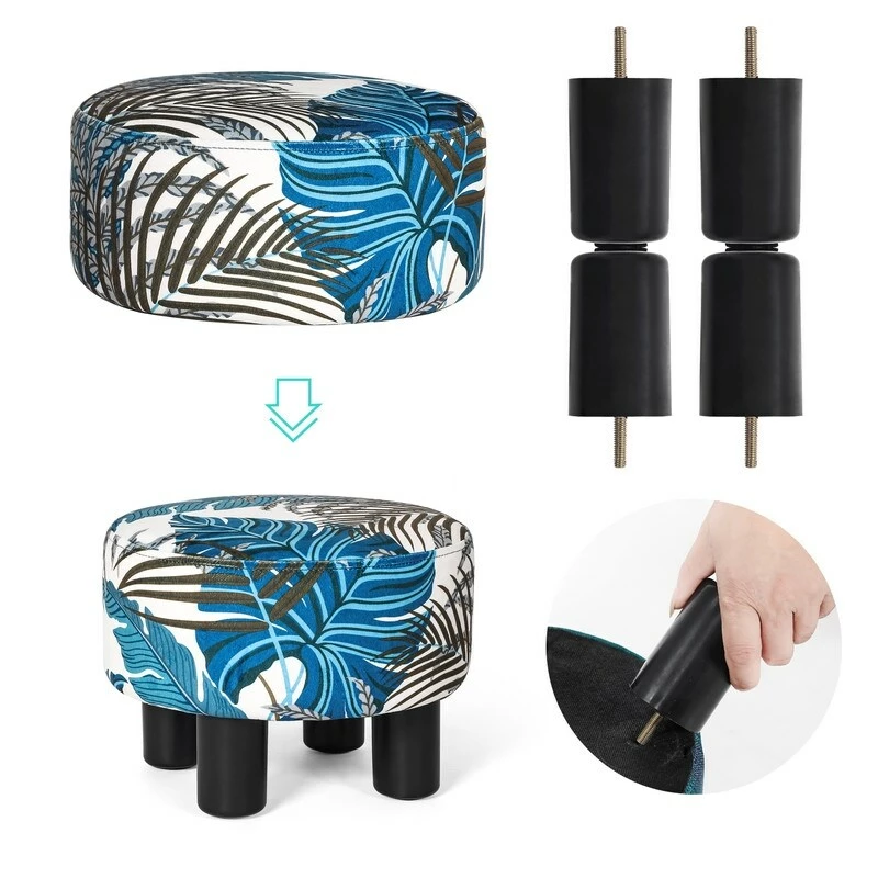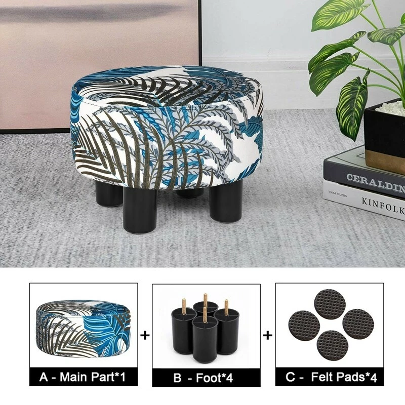SMALL OTTOMAN DIMENSIONS: 12.4″ Length x 12.4″ Width x 9.8″ Height , Leg Length: 3.5″. It is not too low or high, this nice ottoman little stool is great for resting your feet on.SOFT AND COMFORT: This small footrest is made of durable soft material, sturdy frame base, whole piece of high quality thick sponge to ensure for years using. The right balance of soft and firm,perfect for comfortable foot rest.EASY TO INSTALL: You need to install 4 legs by yourself, It is simple, just need to screw the 4 legs of the stool. This cute little foot stool has perfect small size, lightweight and easy to move.ANTI-SLIP PAD: Plastic legs with anti- skidding foot pads prevent sliding while protecting your floors from scuffs and scratches. You can enjoy it without slide and fear of scratching the floor.MULTI-FUNCTION: This stylish footrest can be used when getting dressed in the bedroom, putting on shoes at the entryway, having a rest on chair or using as a footrest under desk. It’s also a step stool for your pretty pets.