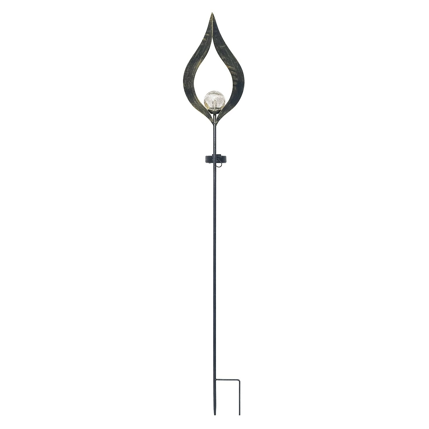 - Unique Design: This garden decor light is designed with glass globe, with a solid iron flame shell. Built in solar panel without any wires, it can convert sunlight into electricity during the day, and light up beautiful lights at night automatically.
