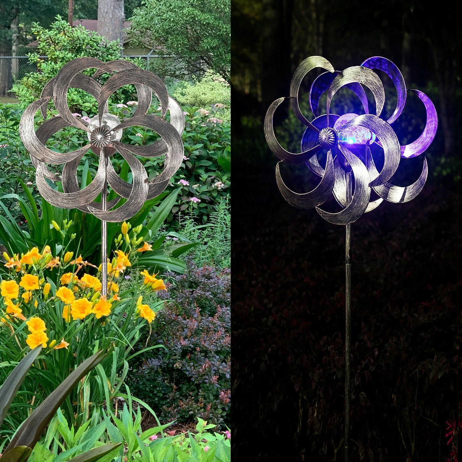 - ใIDEAL GARDENING GIFTS AND DECORATIONใThe solar yard spinner can be placed in the front, backyard, walkway, around your patio or porch. Lighting up the evenings with our yard art wind spinner and spending every wonderful night with your garden! And it is also an amazing gift for your friend or family who is a garden lover.