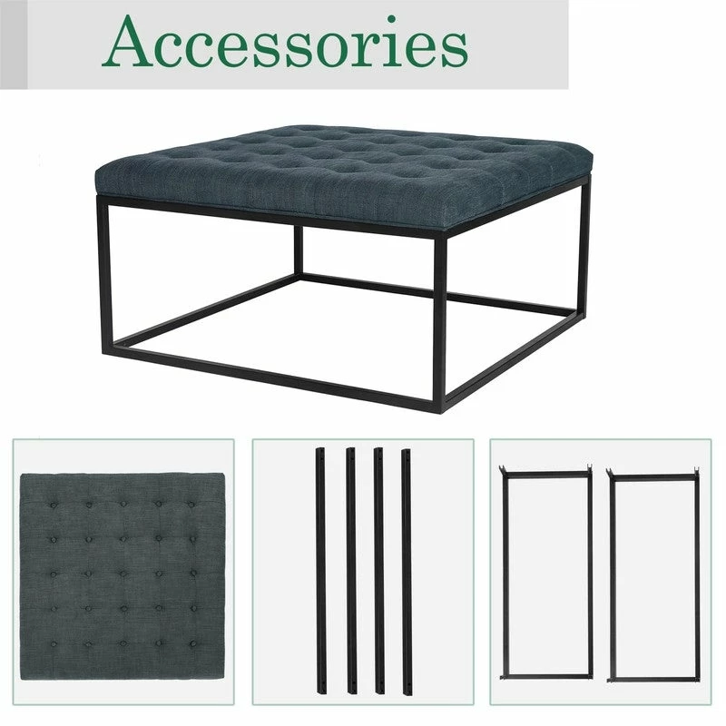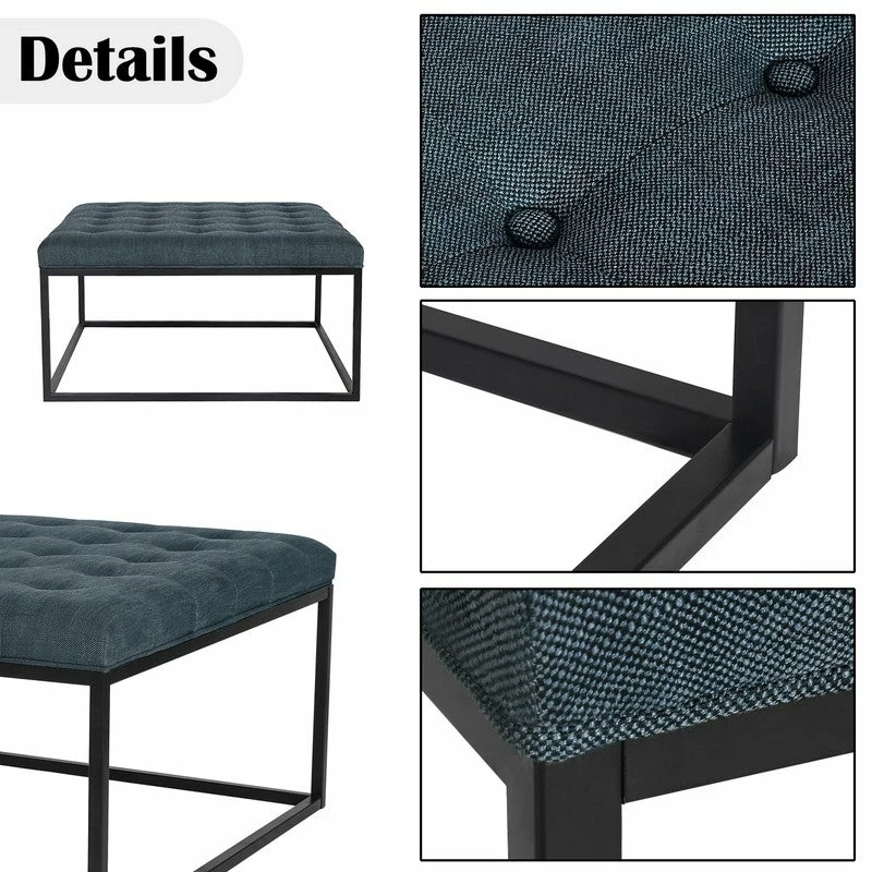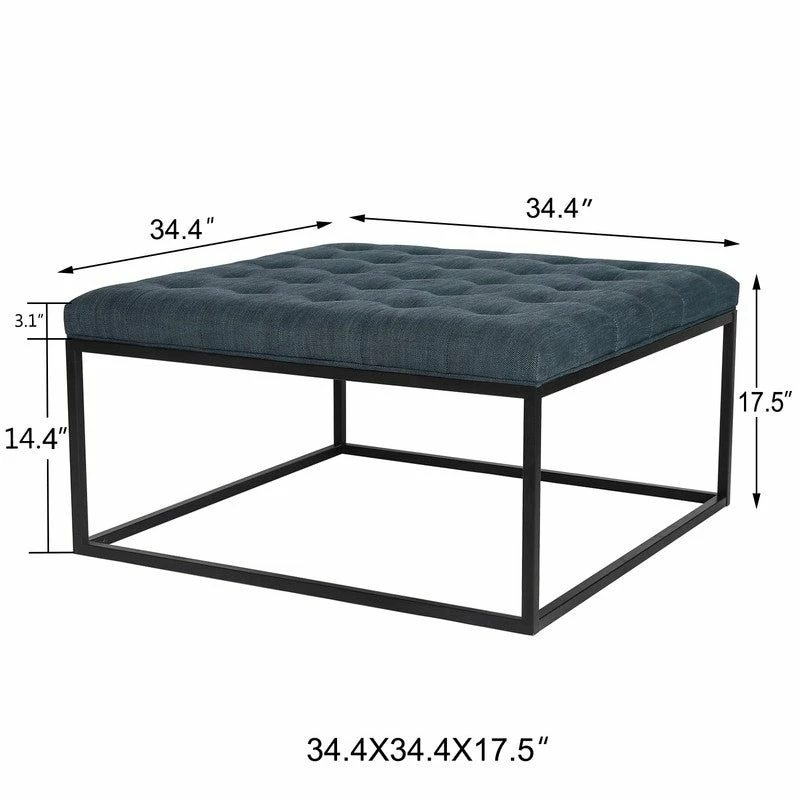 MATERIAL – Our ottoman bench is made of solid metal frame with black finish. Quality fabric button cushion filled with high-density sponge is permanently comfortable, environmental friendly and recyclable.DIMENSIONS – Total size: 34.4 x 34.4 x 17.5(LxWxH) inches. Cushion Thick 3.1 inches. Item Weight 25.3 Lbs. Max Support 360 Lbs. This ottoman bench for bedroom has the perfect size to meet your home decor needs.Functional Coffee Table – The ottoman table comes with soft pads to prevent noisy and protect your floor. Feel free to move the bench anywhere such as living room, dining room, entryway, bedroom or near window without worrying about undesired sound.Assembly Is Required – The living room ottoman bench comes with all parts including all hardware for the installation. Please refer to detailed manual on our pictures, it only takes a few minutes. Click on the Add To Cart button now!