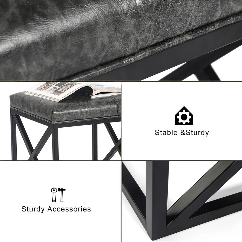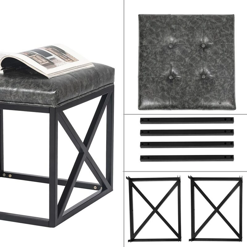 Sturdy Construction – Our ottoman footstool is made of solid metal frame with black finish. Extra thick PU button seat filled with high-density sponge is comfortable, environmental friendly and recyclable.Product Dimension – Total size: 18.7 x 18.7 x 18(LxWxH) inches. Cushion Thick 3.1 inches. Item Weight 13.2 Lbs. Max Support 300 Lbs. This metal ottoman table looks modern and classy. Perfect size to meet your home decor needs.Waterproof PU Cushion – The vanity stool seat with PU Leather cover is waterproof and stain resistant which is very easy to clean. Great for a makeup vanity or at the foot of a bed.Bottom Rubber Floor Protector – The kitchen bar stool comes with floor protector to prevent noisy and protect your floor. Feel free to move the bench anywhere without worrying about undesired sound.Easy to Assemble – The living room ottoman bench comes with all parts including all hardware. Please feel free to contact us if you have any problems.Buy it with