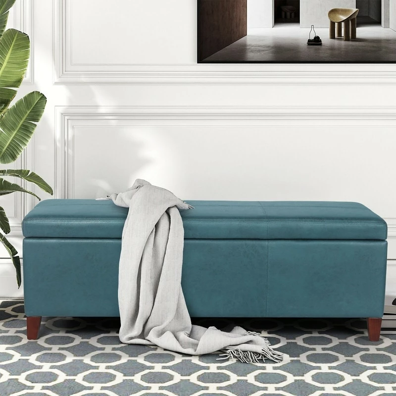 Multi-Functional: The storage ottoman can be used in an entry as a shoe bench, be placed at the foot of bed to sit on/dress, storing, providing additional sitting on parties and family gatherings, or just acting as a timeless coffee table.
