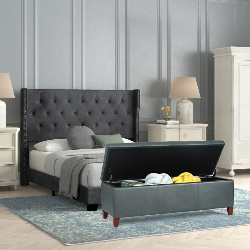 Stable Construction: The cushioned storage bench was well constructed with solid wood frame, which ensures long durability & stability. In addition, non-slip protection design for wood leg base, that helps keep our ottoman in place and also prevent scratches on the floor.